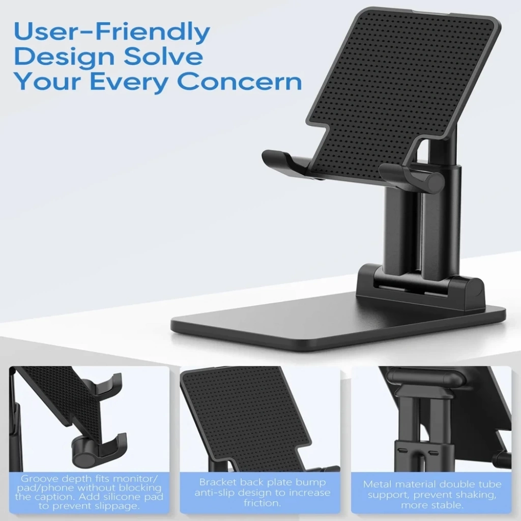 Katlanabilir tasarımı ile kullanmadığınız zaman yer tasarrufu sağlamak için telefon standını daha küçük boyuta katlayabilirsiniz.