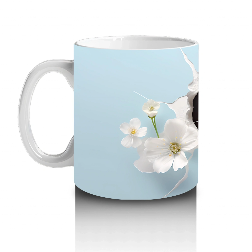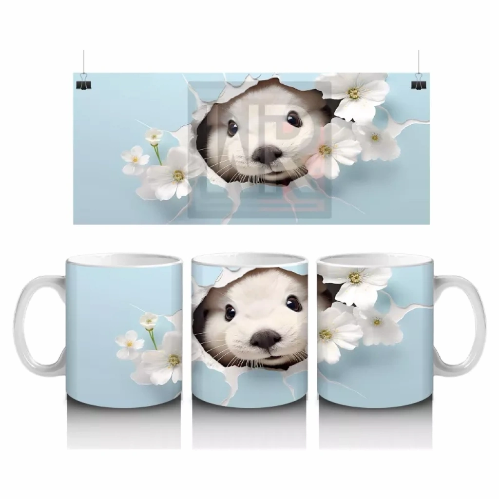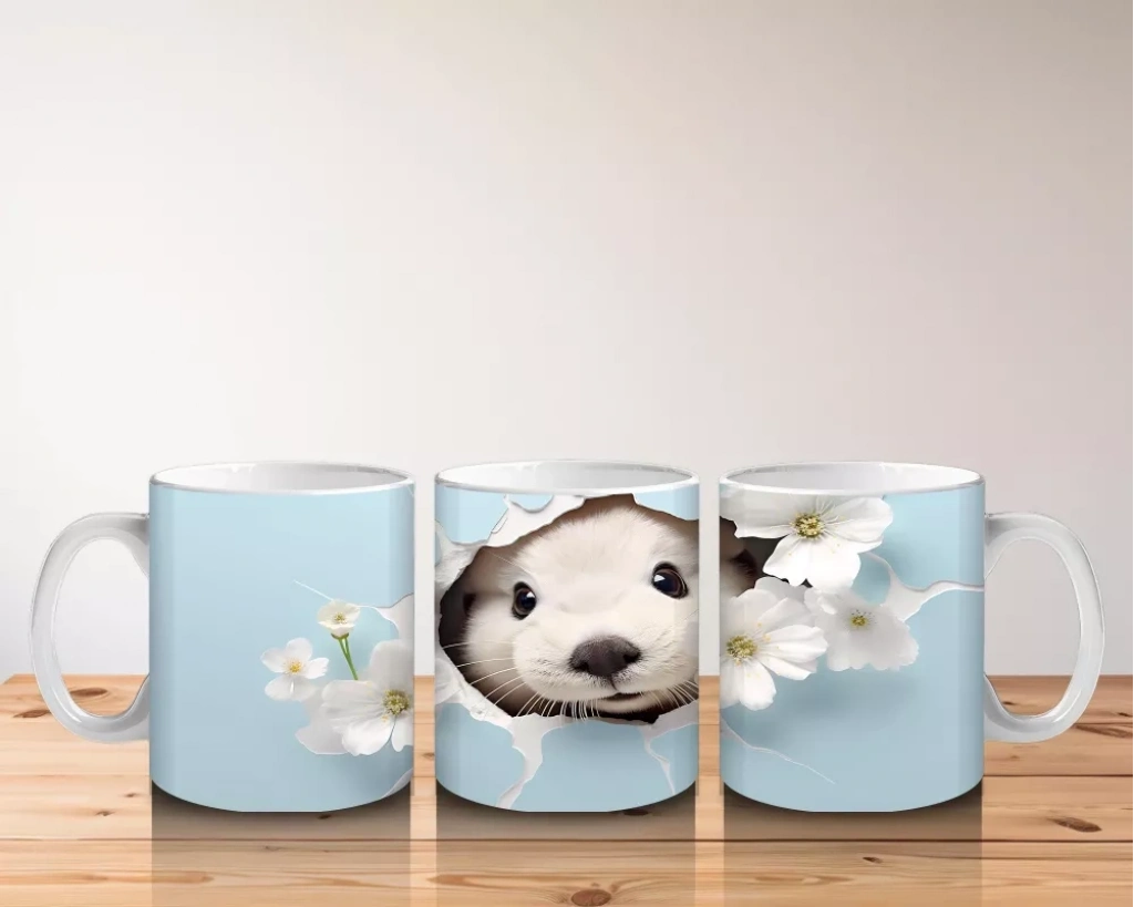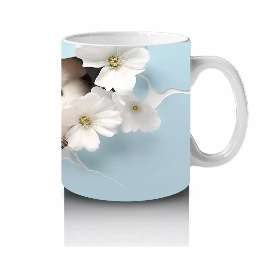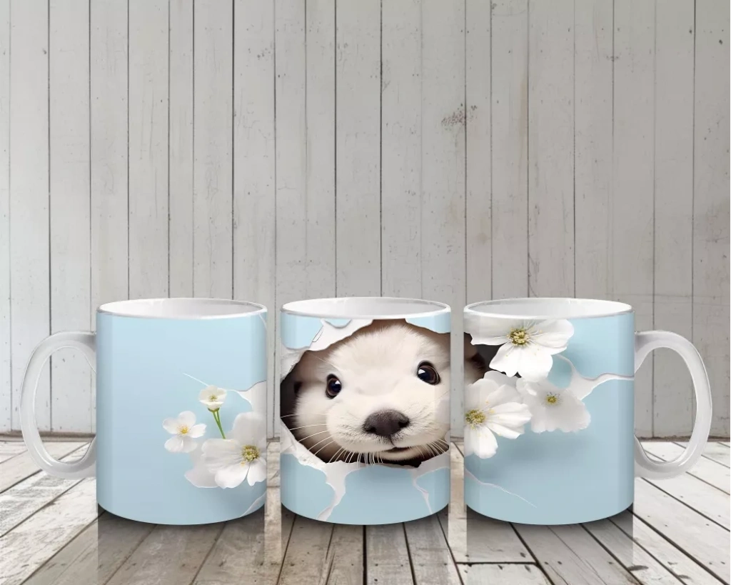 Mavi arka plan üzerinde çiçeklerle çevrili bu sevimli su samuru, neşeli ve huzurlu bir atmosfer yaratıyor. Doğa temalı, yumuşak ve pozitif bir kupa tasarımı arayanlara özel.