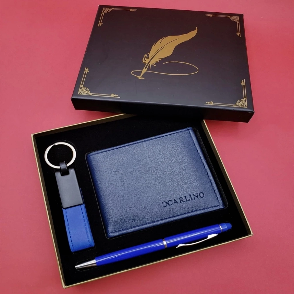 Mavi Cüzdan Kalem ve Deri Anahtarlık Set Erkeğe Özel Hazırlanmış Olup Erkeklere Alınacak En İdeal Hediye Seçeneğidir.