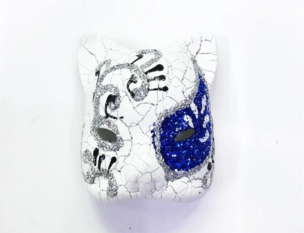 Mavi Renk İşlemeli Seramik Malzemeden İmal Venedik Kedi Model Magnet
