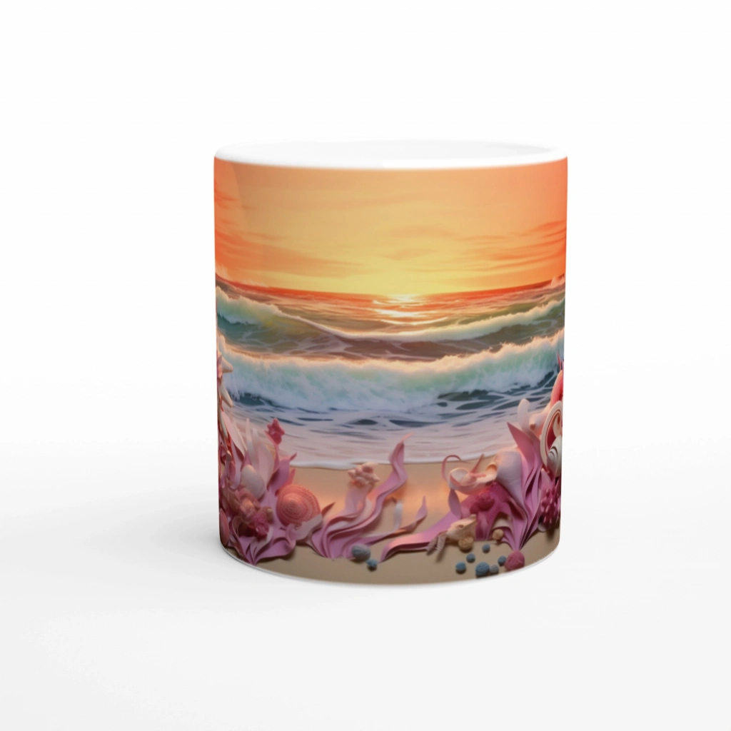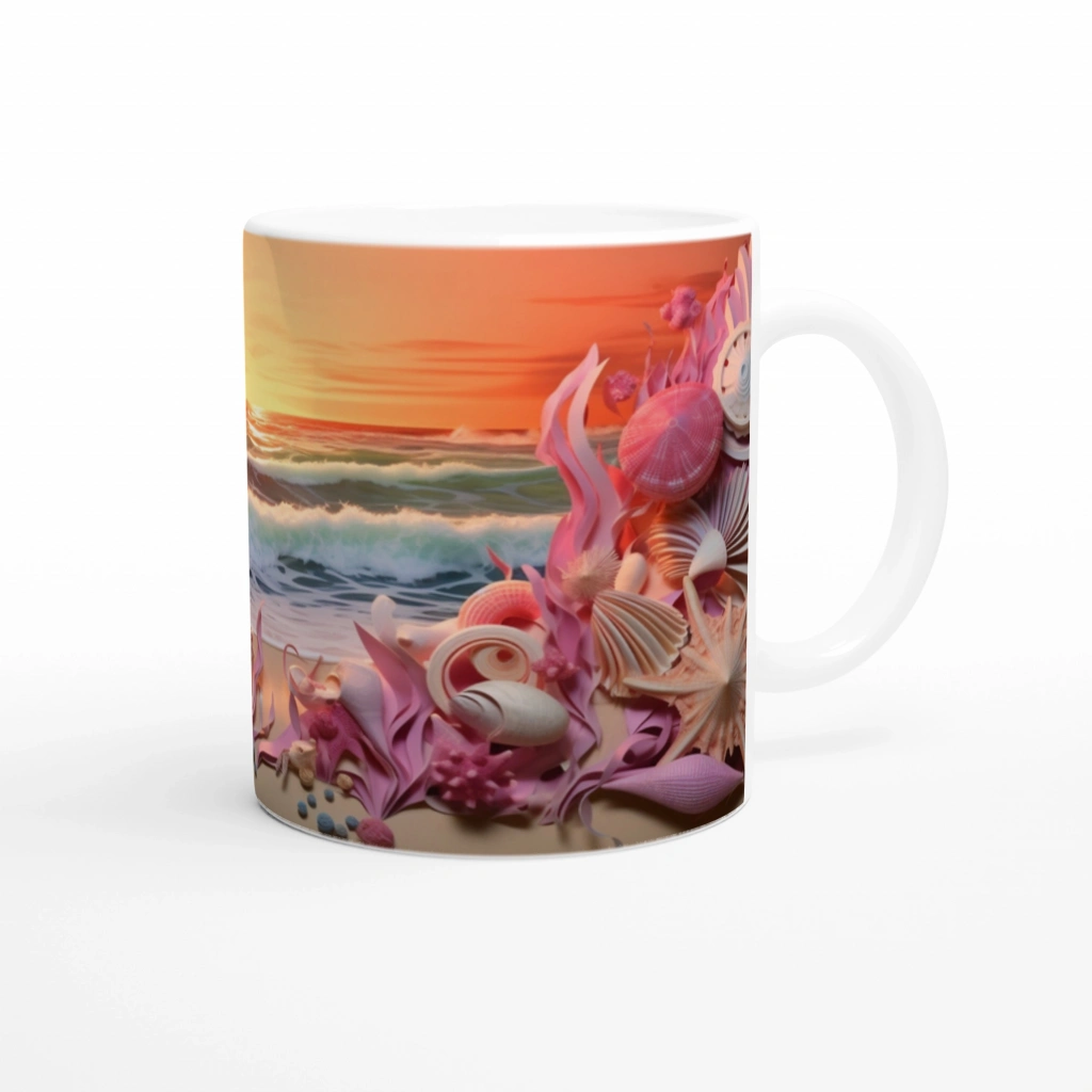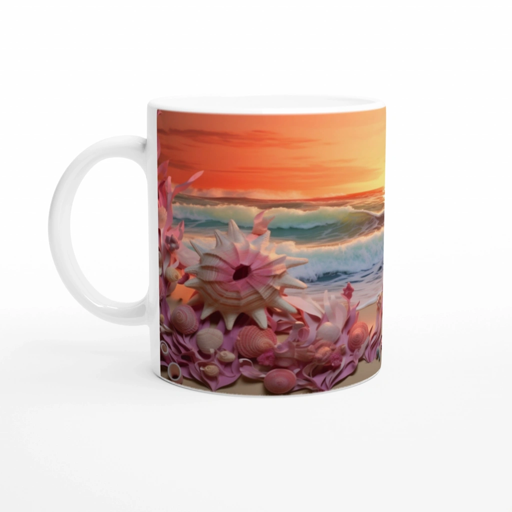 Mercan Dalgalarıyla Deniz Kabukları Kupa Bardak