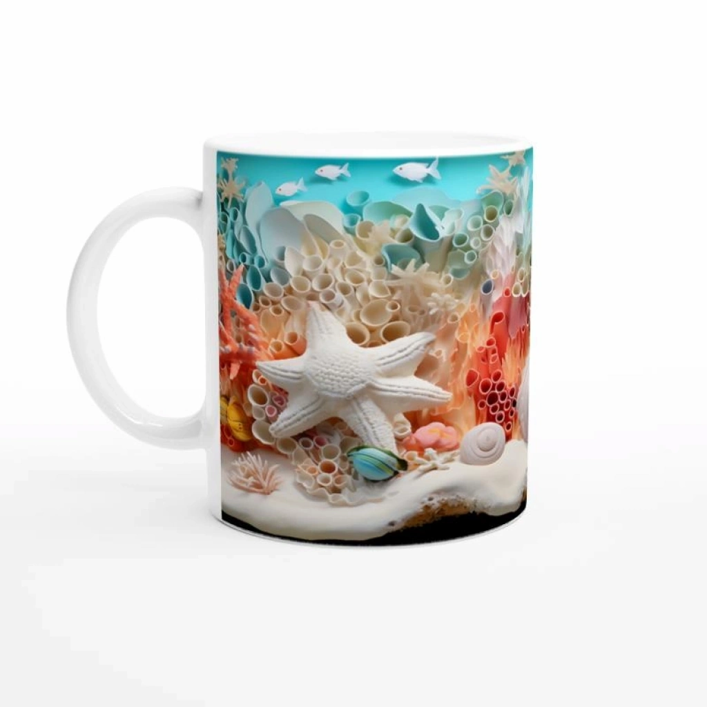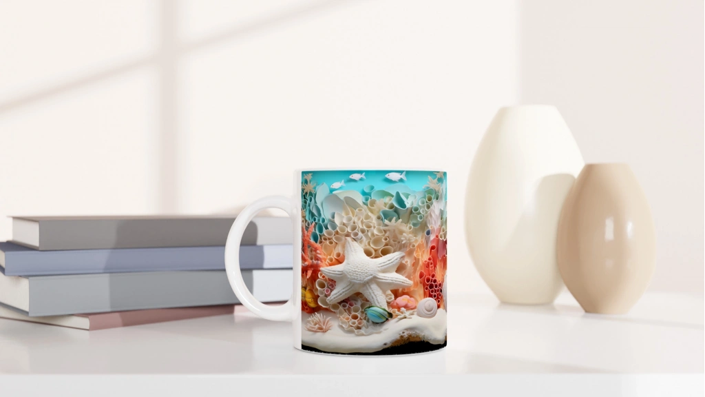 Mercan Ormanında Deniz Yıldızı Kupa Bardak, hem doğa severlere hem de estetik tasarımları sevenlere ilham veren eşsiz bir kupa seçeneğidir.