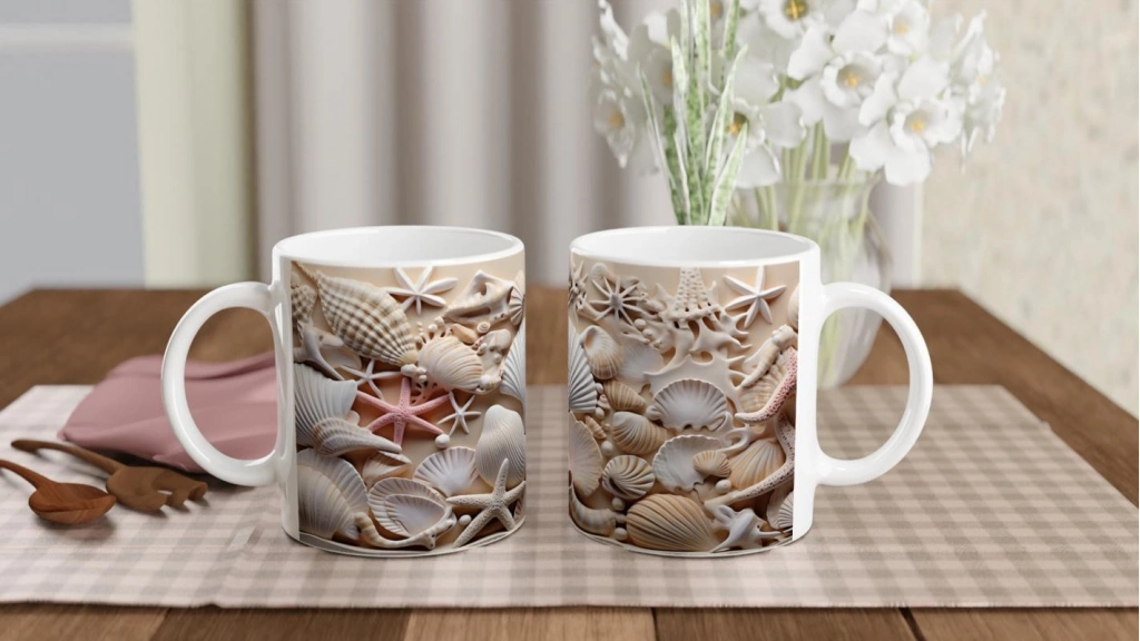 Farklı kabuk dokuları, pastel tonlarda mercan figürleri ve detaylı deniz yıldızlarıyla tasarlanan bu kupa bardak, deniz tutkunları için eşsiz bir hediye seçeneğidir.