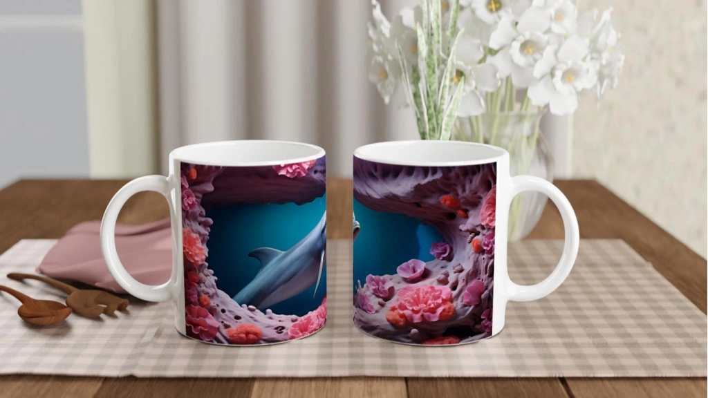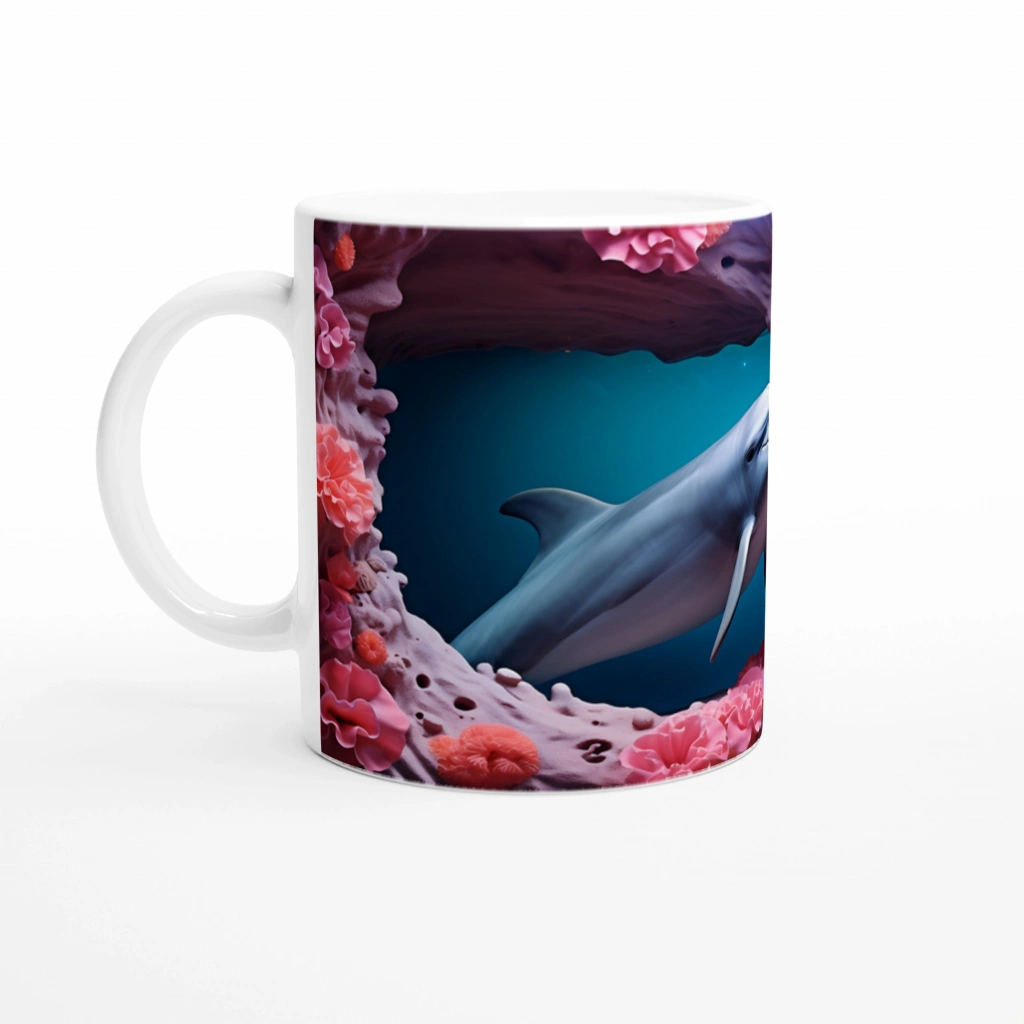 Sevimli yunus ve renkli mercan detaylarıyla bezeli bu su altı temalı kupa bardak, her yudumda okyanusun enerjisini yansıtıyor.
