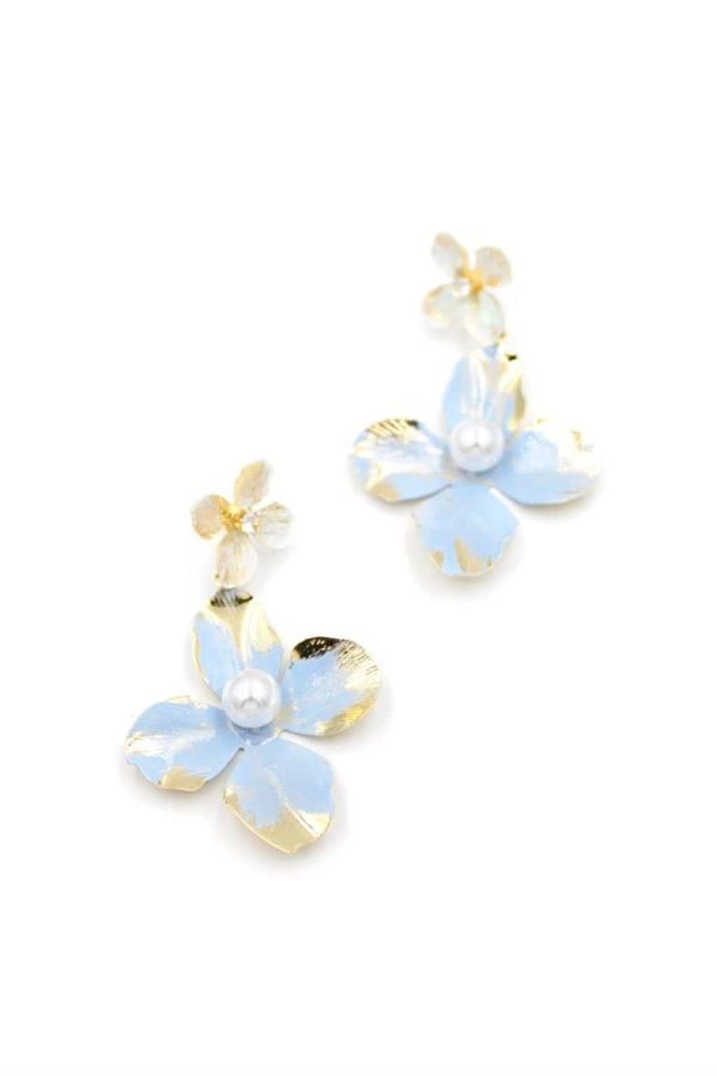 Metal Çiçek Küpe - Mavi