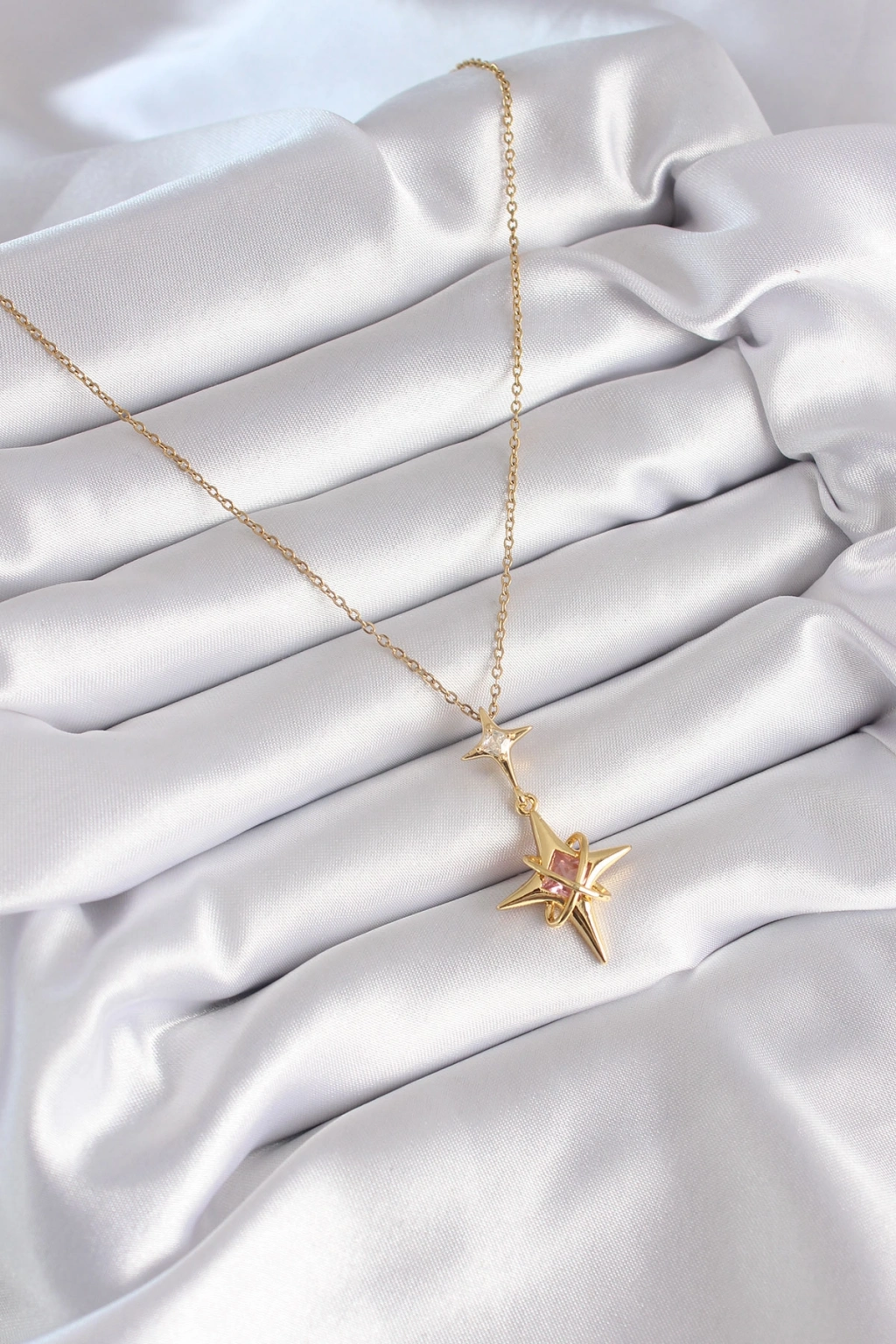 316L Çelik Gold Renk Zirkon Taşlı Kutup Yıldızı Model Kadın Kolye