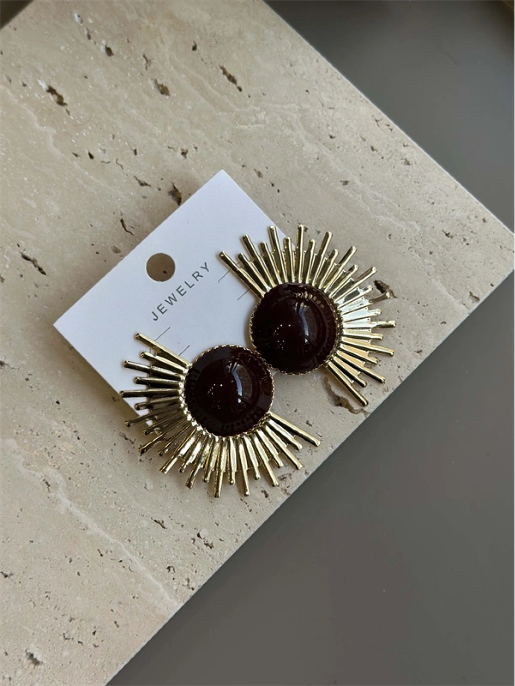Mineli Güneş Küpe - Kahverengi