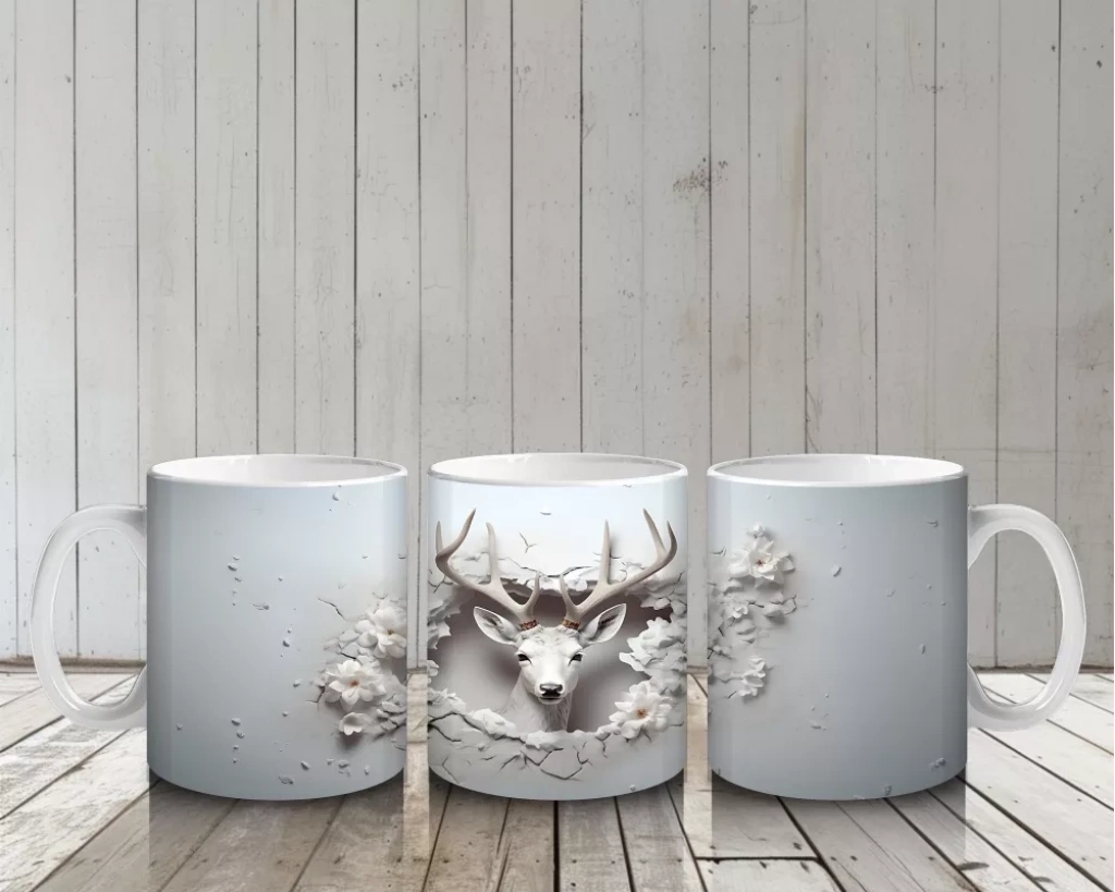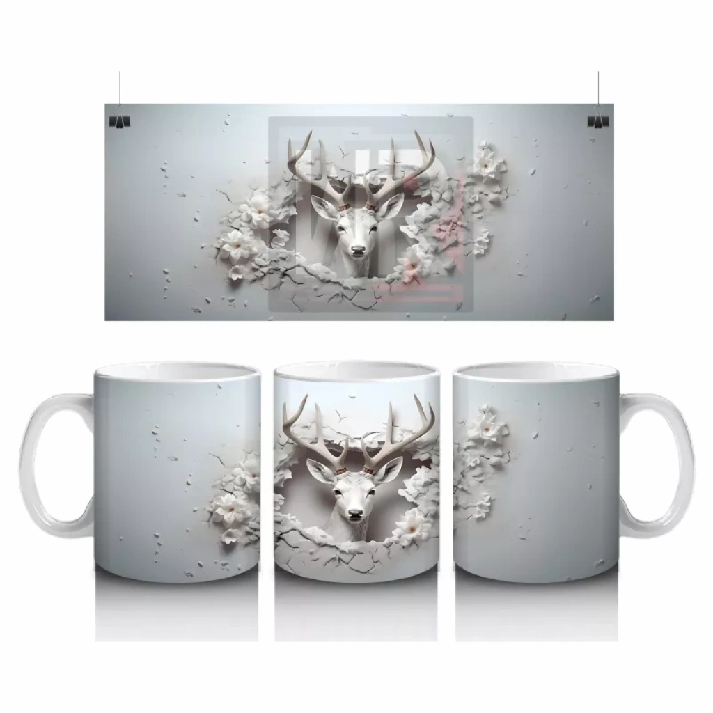 Gri tonların sadeliğiyle tasarlanmış bu minimal geyik figürü, çatlak yüzeyde zarif bir şekilde beliriyor. Modern ve sade estetikten hoşlananlar için şık bir kupa tasarımı.