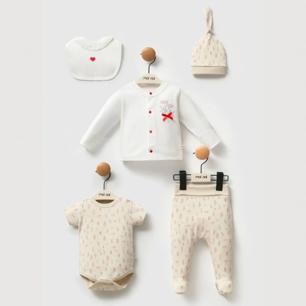 Moi Noi 5li Bebek Hastane Çıkışı pamuklu kumaştan üretildiği için sık yıkamaya uygundur.