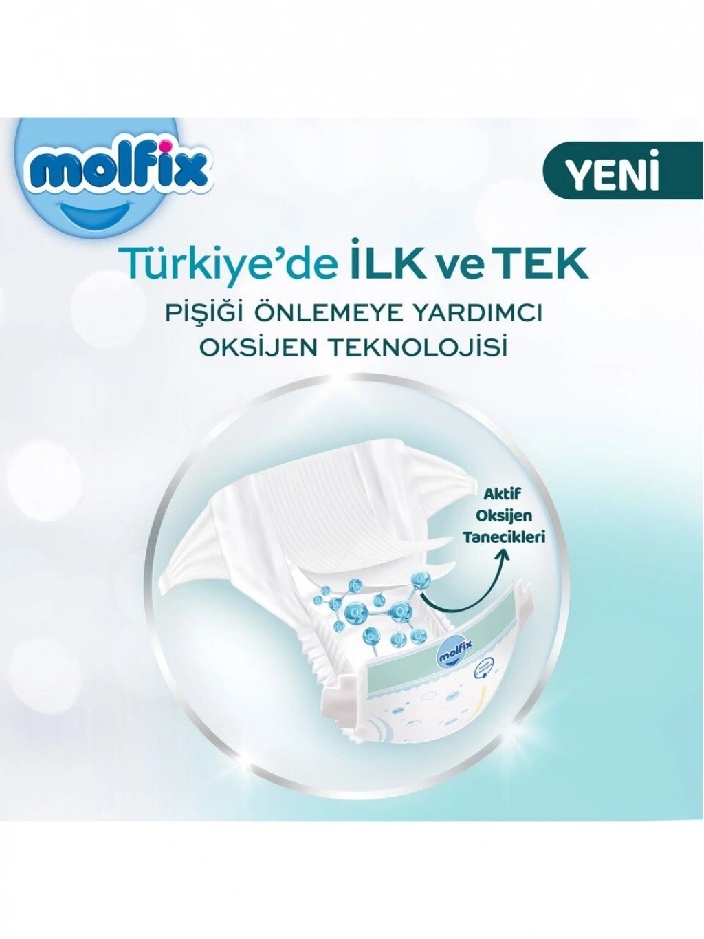 Molfix Premium Oksijen Teknolojisi, yüksek emici özellikleri ile sıvıyı hızlıca emerek bebek cildinin kuru kalmasını sağlar.