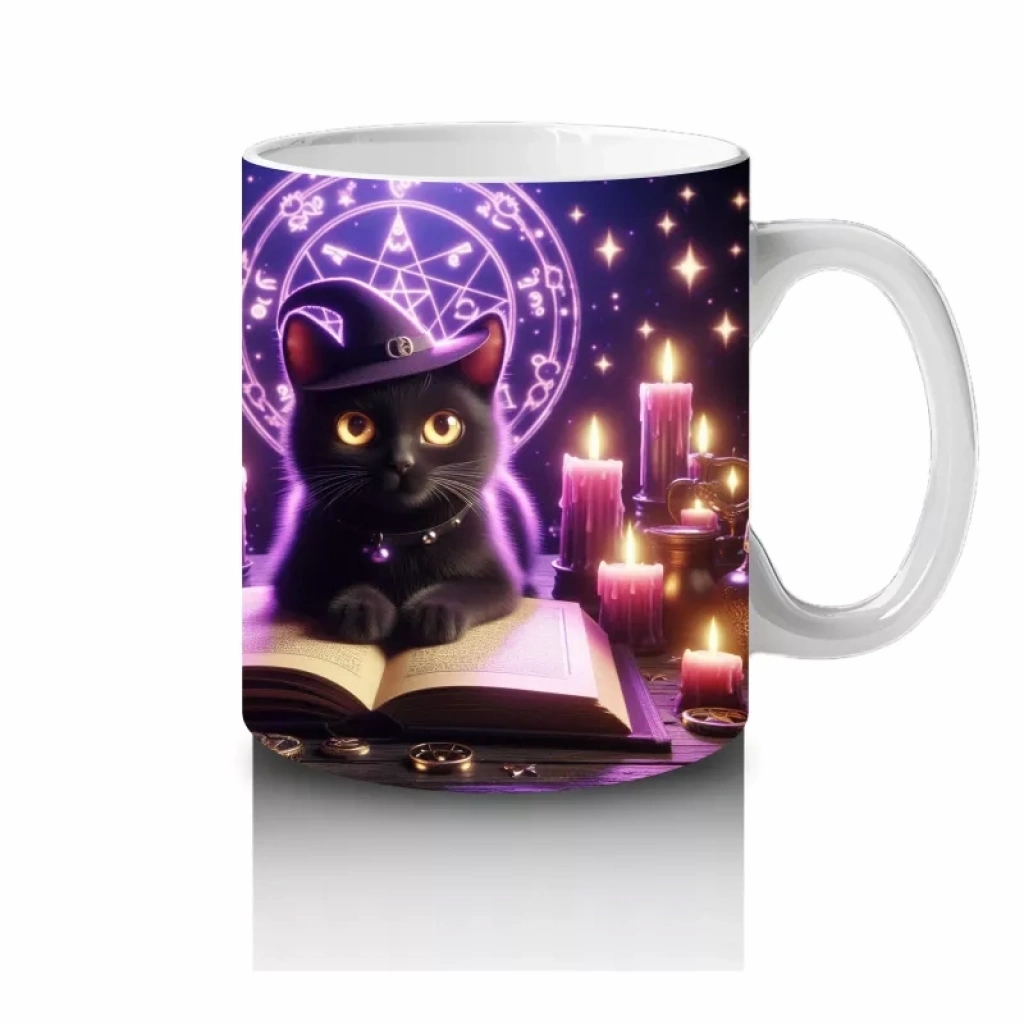 Mor Işıklı Büyü Sahnesinde Kitap Okuyan Cadı Figürlü Cadılar Bayramı Baskılı Kupa BardakMor ışıklı büyü sahnesinde kitap okuyan cadı figürüyle tasarlanan bu kupa bardak, Cadılar Bayramı’na mistik ve büyülü bir hava katar.