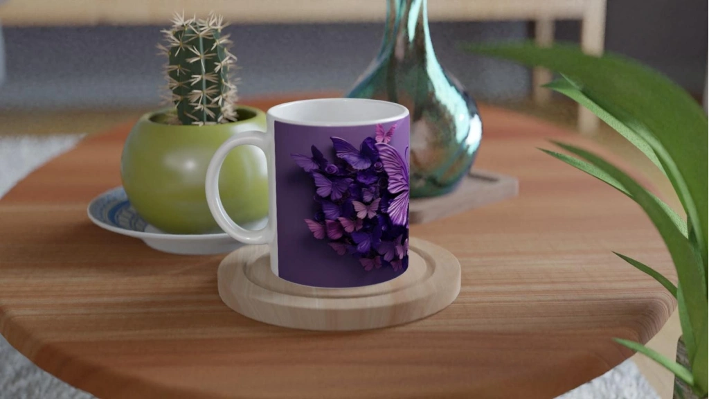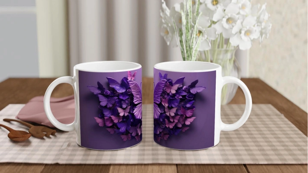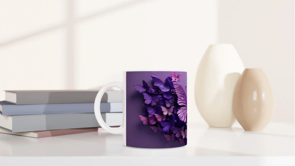 Mor Kelebekler ve Çiçekler Temalı Baskılı Kupa Bardak, büyüleyici kelebek figürleriyle romantik bir hava yaratıyor. Sade ve etkileyici bu tasarım, özellikle estetik detaylara önem verenler için vazgeçilmez bir hediye seçeneği.