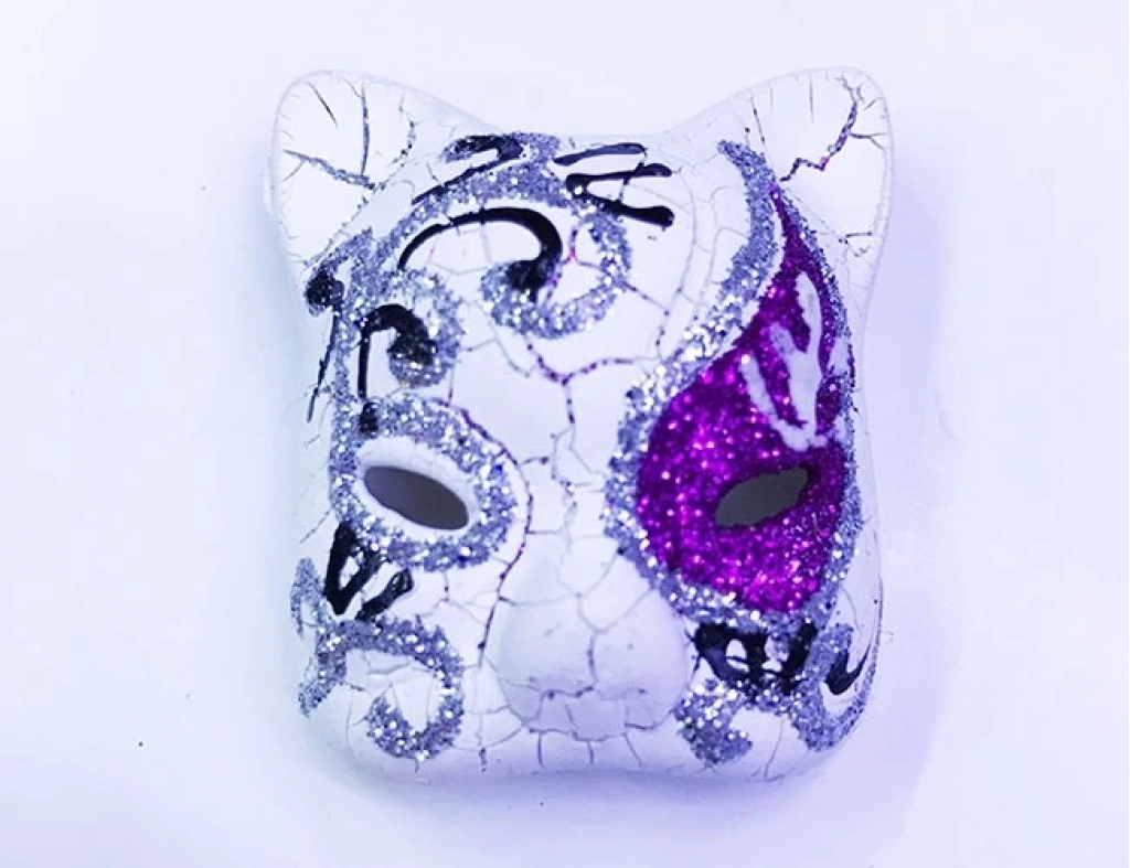 Mor Renk İşlemeli Seramik Malzemeden İmal Venedik Kedi Model Magnet