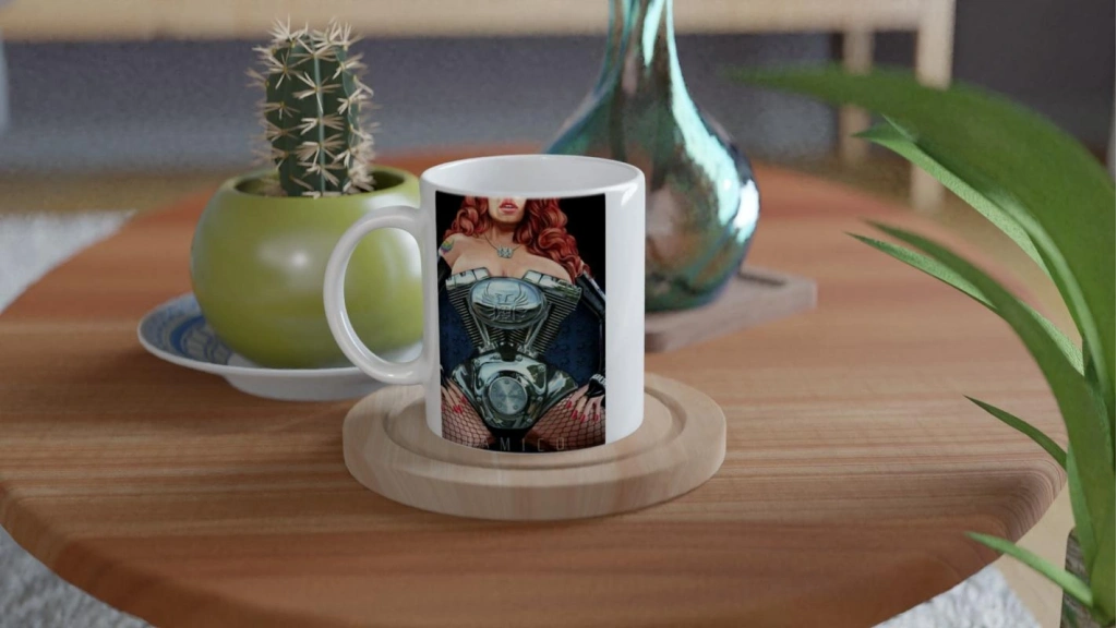 Motor tutkusunu feminen detaylarla birleştiren bu özel baskılı kupa bardak, koleksiyonluk bir parçadır.