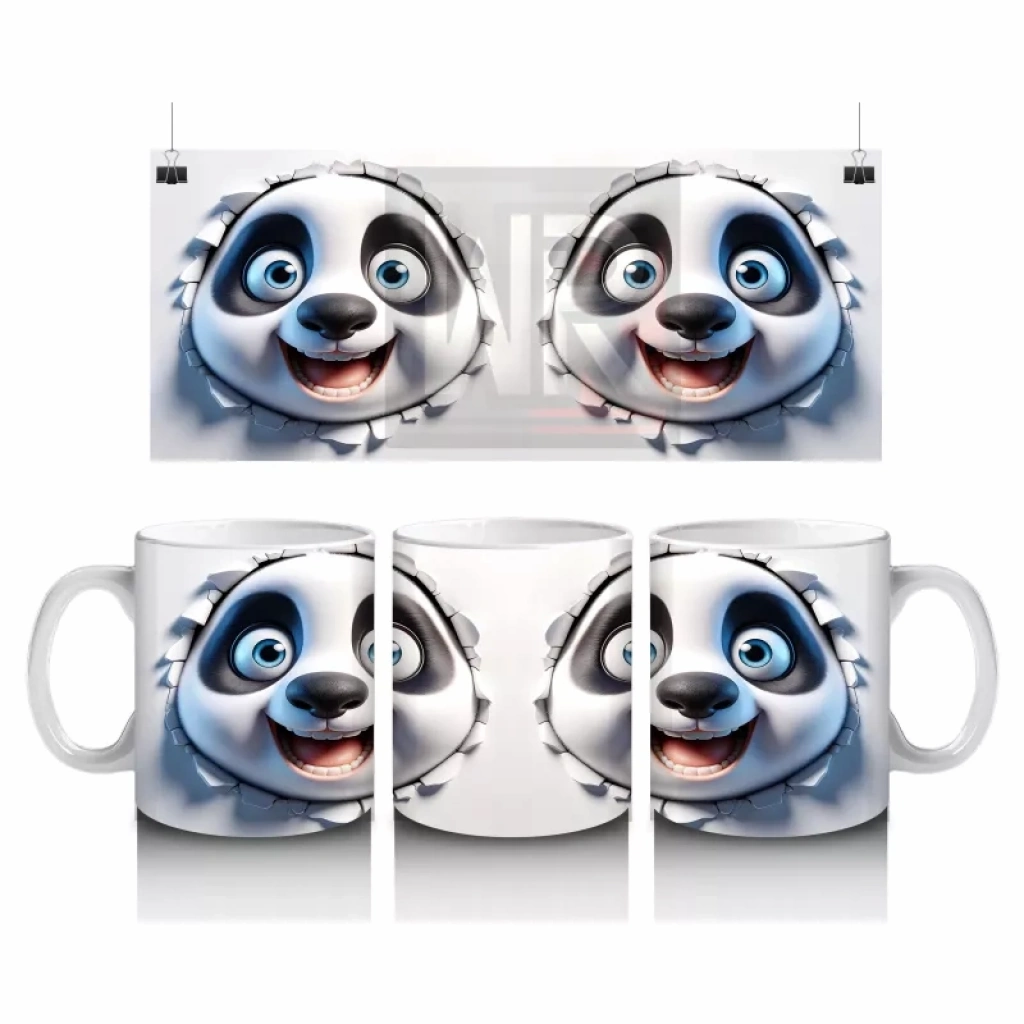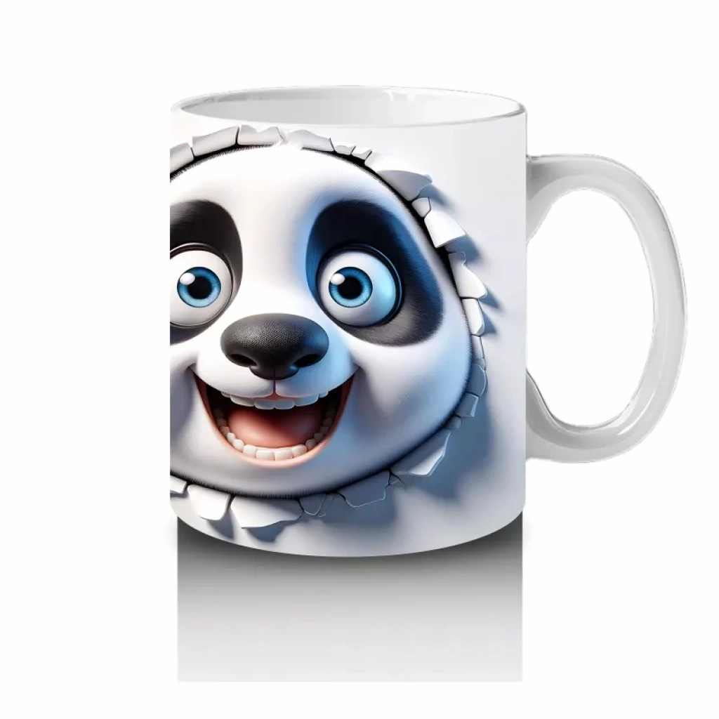 Tatlı ve mutlu ifadeleriyle bakan panda yüzleri, sadeliği ve sevimliliği bir araya getiriyor. Doğaseverler ve panda hayranları için sıcak ve içten bir kupa tasarımı.