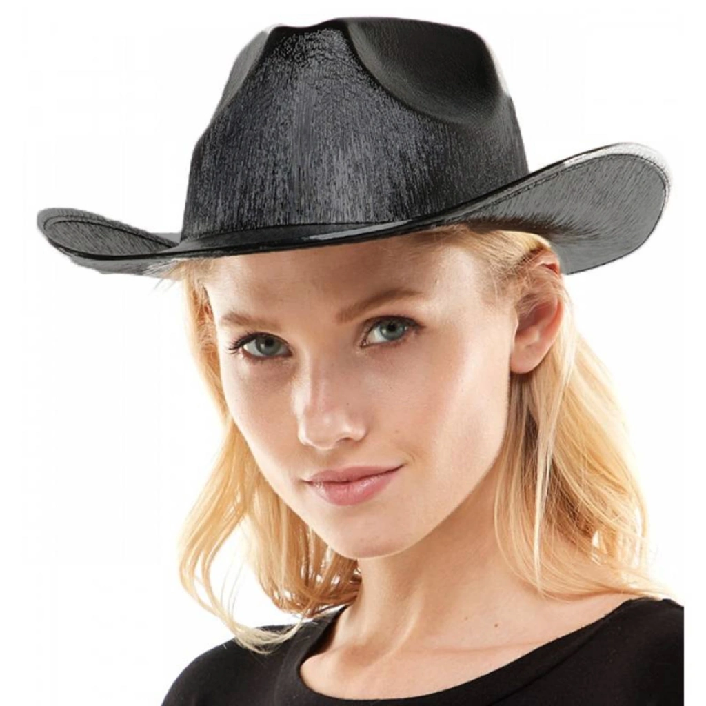 Neon Hologramlı Kovboy Model Parti Şapkası Siyah Yetişkin 39X36X14 cm