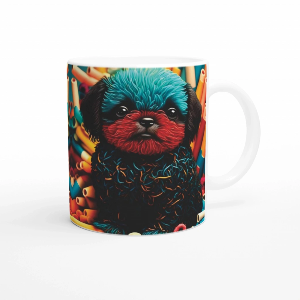 Enerjik, dikkat çekici ve bol renkli bir kupa ile tanışın! Bu neon tonlarla bezenmiş sevimli köpek tasarımı, sıradan kupaların ötesine geçiyor.