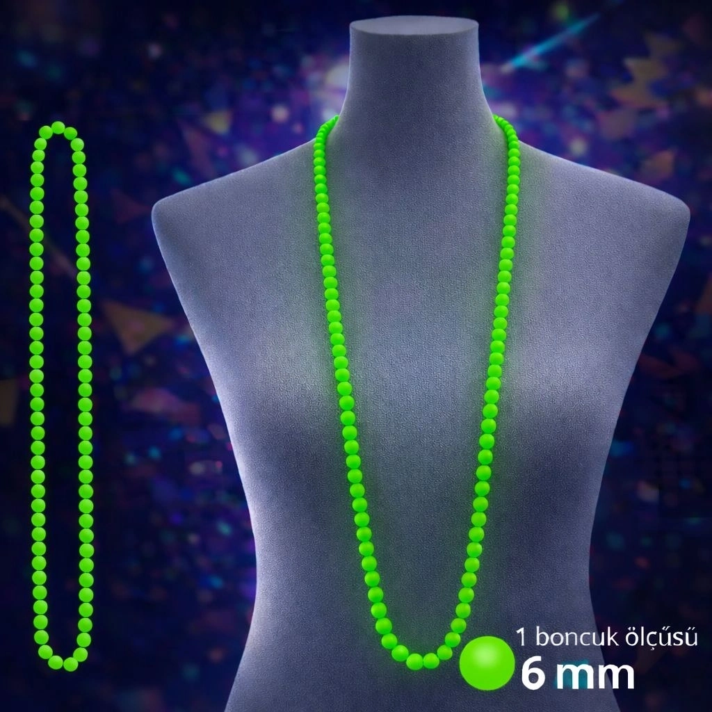 Neon Yeşil Boncuk Kolye – 80 cm Parti Aksesuarı
