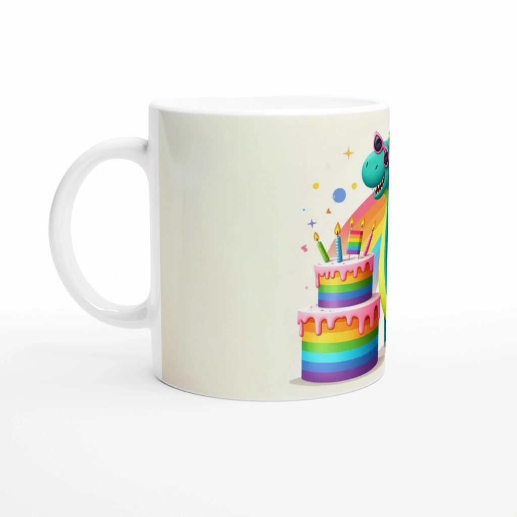parti şapkalı dinozor ve gökkuşağı pastası temasıyla tam bir renk cümbüşü sunuyor!