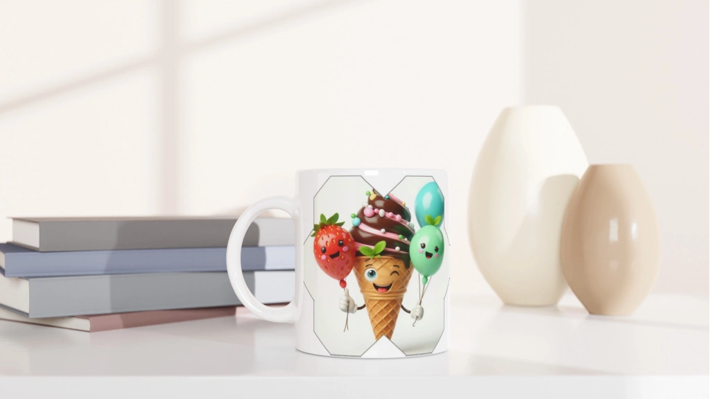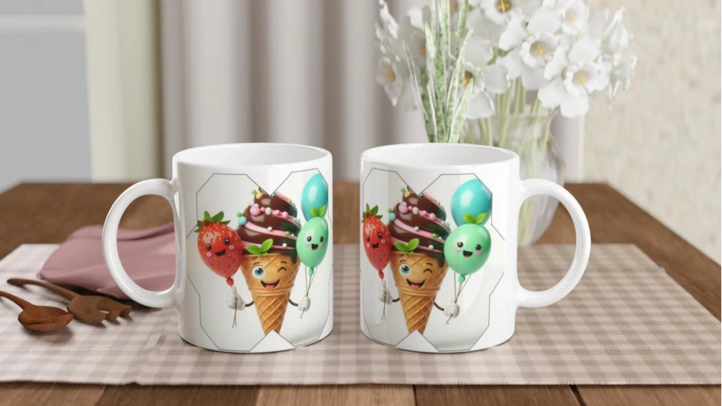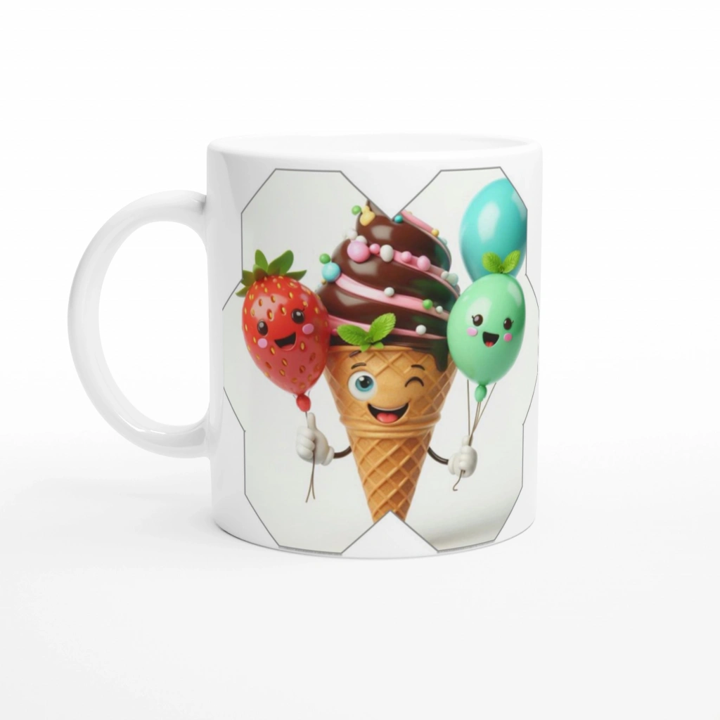 Neşeli Dondurma ve Balonlar Temalı Çocuklara Özel Baskılı Kupa Bardak