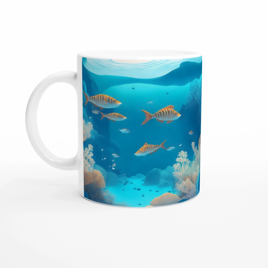 Bu deniz temalı kişiye özel kupa bardak; su altı dünyası baskılı kupa, deniz canlıları kupa bardak, okyanus temalı kahve kupası, balık desenli kişiselleştirilmiş kupa gibi anahtar kelimelerle arama yapanlar için ideal bir tercihtir.