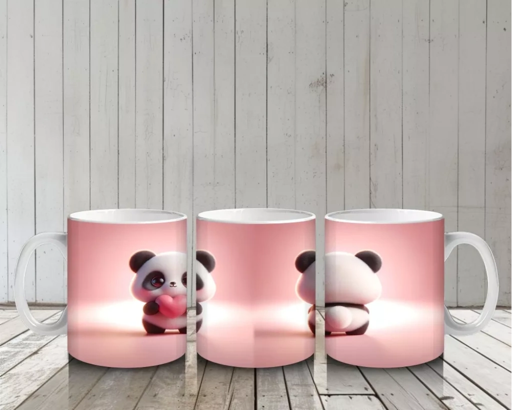 Ön ve Arka Yüzüyle Sevimli Panda Karakteri – Baskılı Kahve Kupası