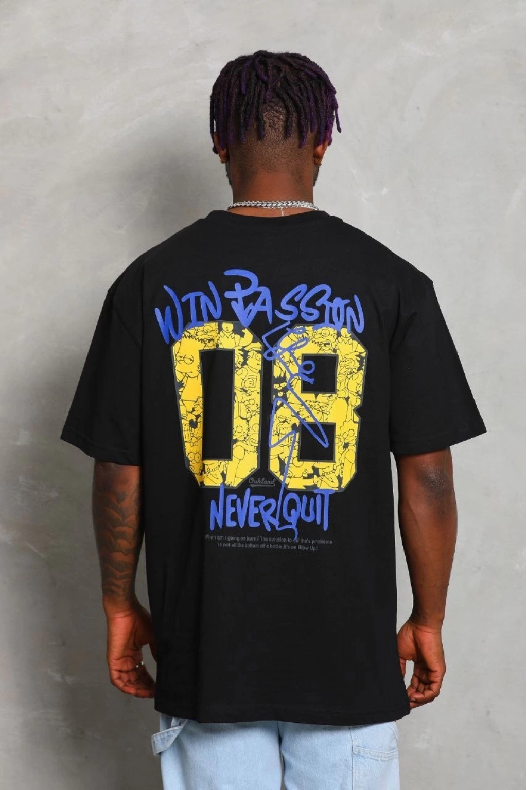 Oversize Baskılı Bisiklet Yaka T-Shirt - Siyah -