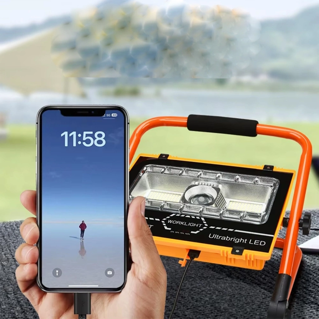 P70 Led Solar Panel Şarjlı Taşınabilir Projektör 176 Smd + Yan Led Wt-734