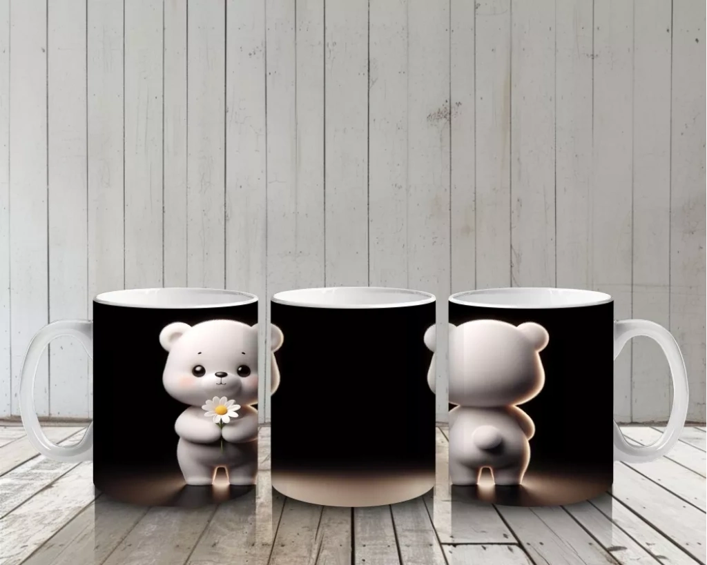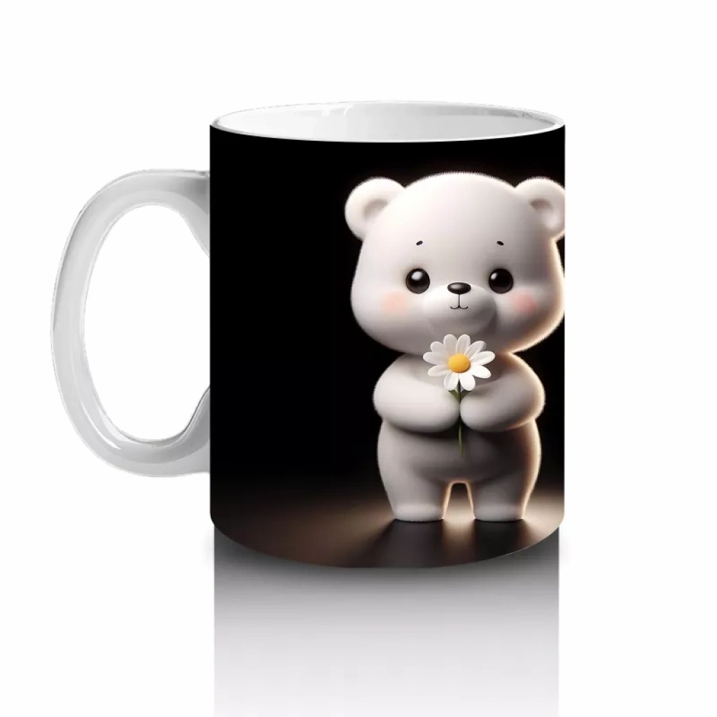 Papatya Tutan Sevimli Beyaz Ayıcık – Baskılı Kahve Kupası