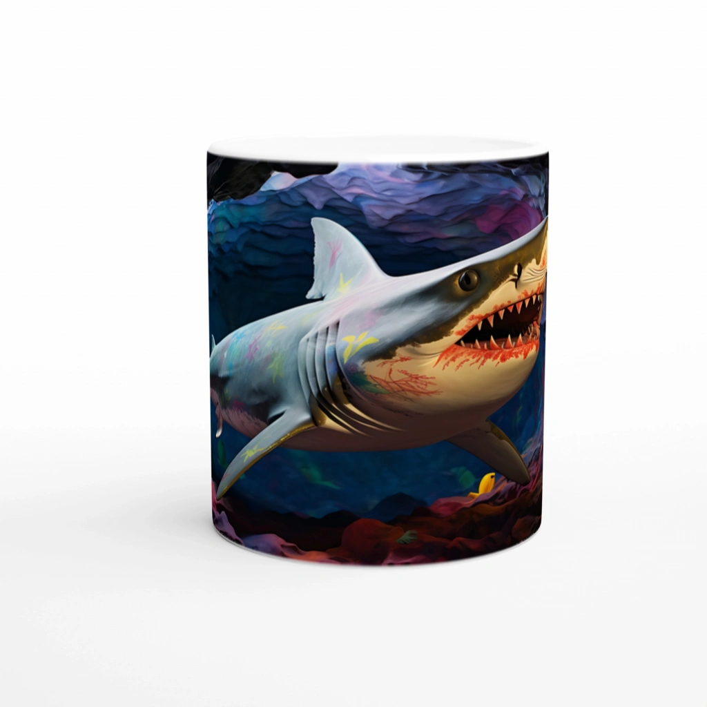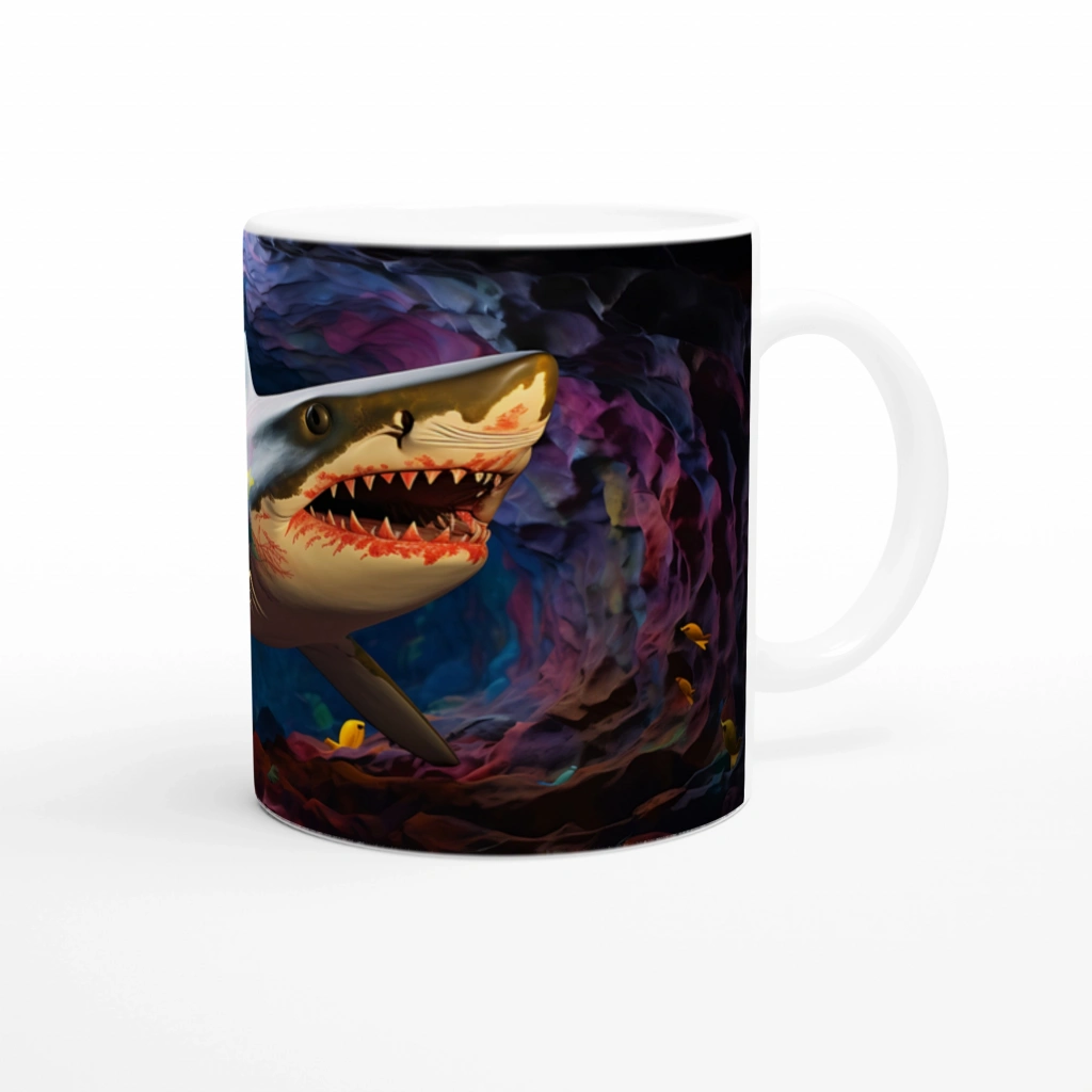 Parlak Desenli Köpekbalığı ve Derin Mağara Su Altı Temalı Kupa Bardak