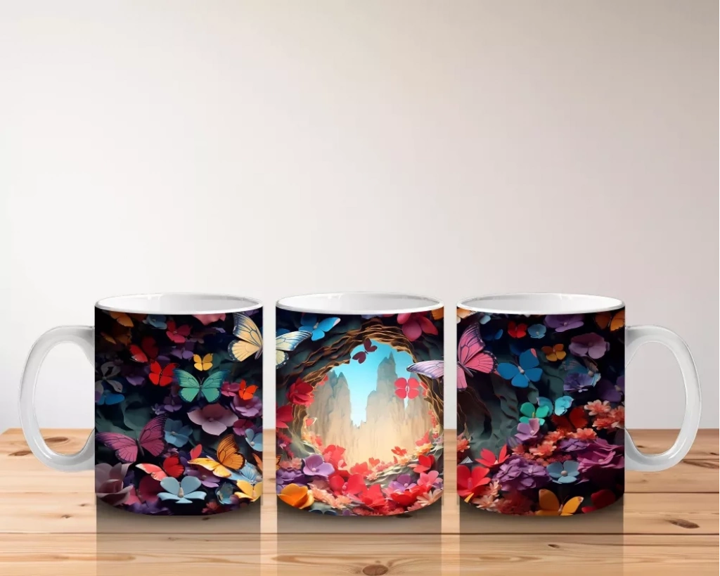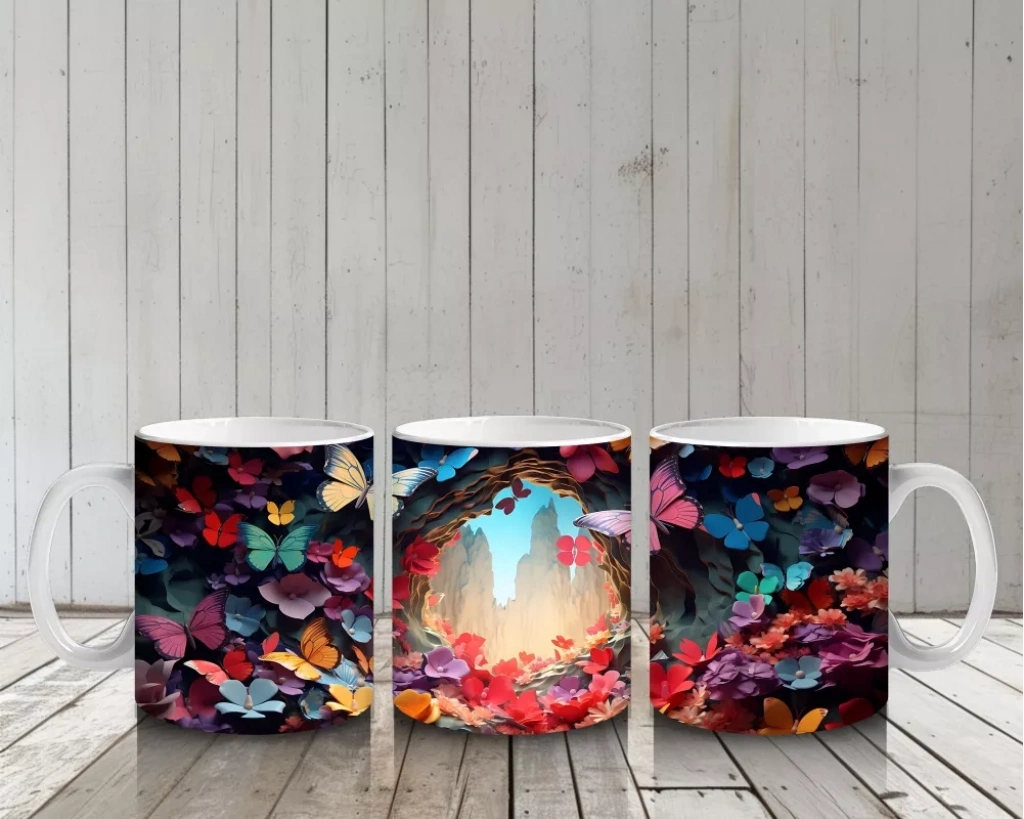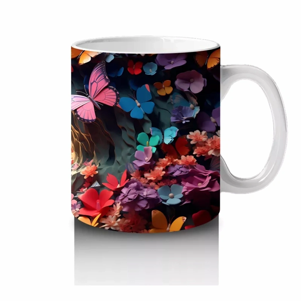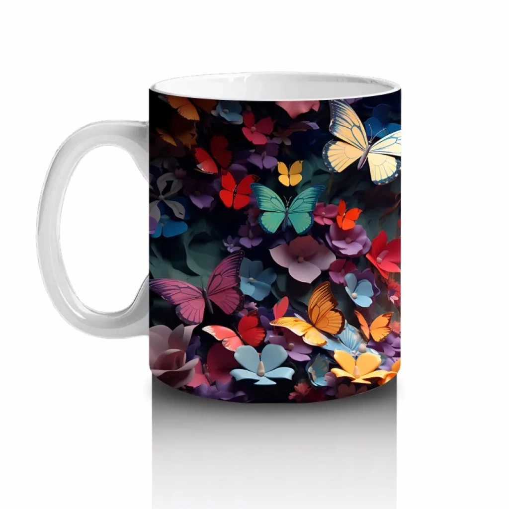 Parlak Kalpli Tünelde Pembe Kelebek – Baskılı Kupa
