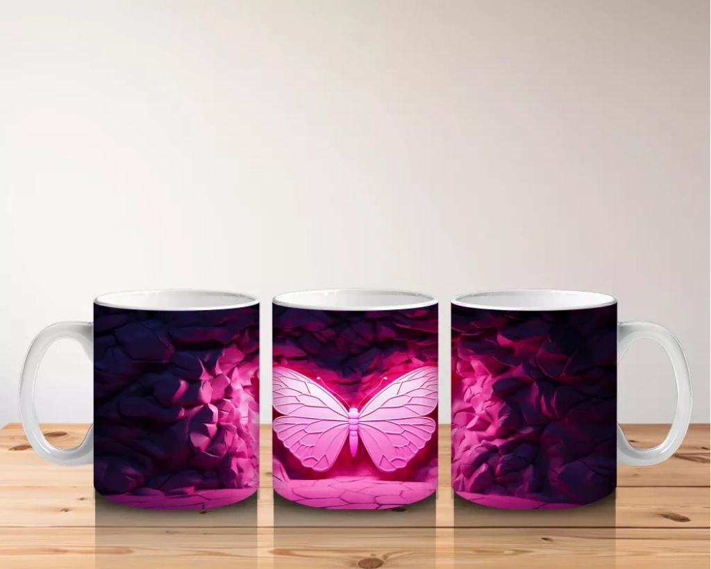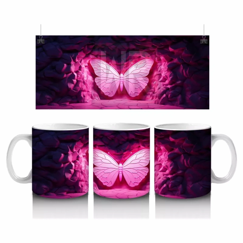 Parlak pembe ışıltılar içinde süzülen zarif kelebek, göz alıcı tasarımıyla büyülüyor. Güzellik ve zarafeti yansıtan bu kupa, estetik detayları sevenler için ideal.