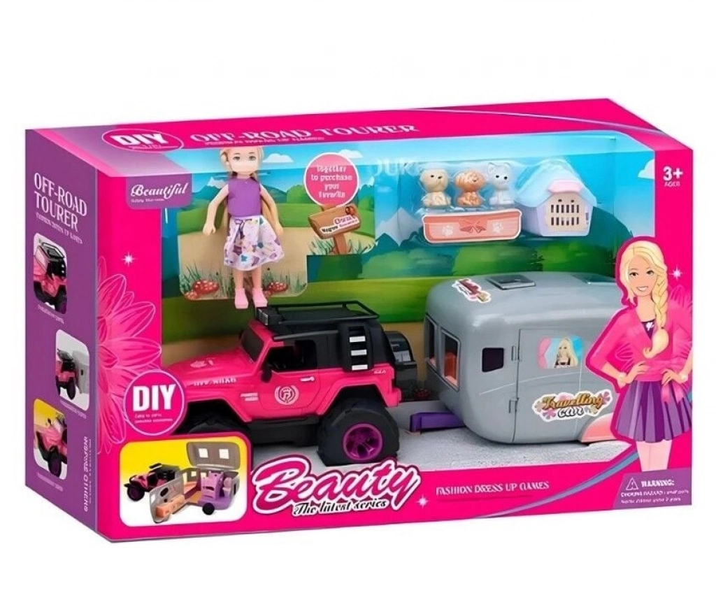 Işıklı Jeep Karavan, macera dolu oyunlar için tasarlanmış eğlenceli bir oyuncak setidir.