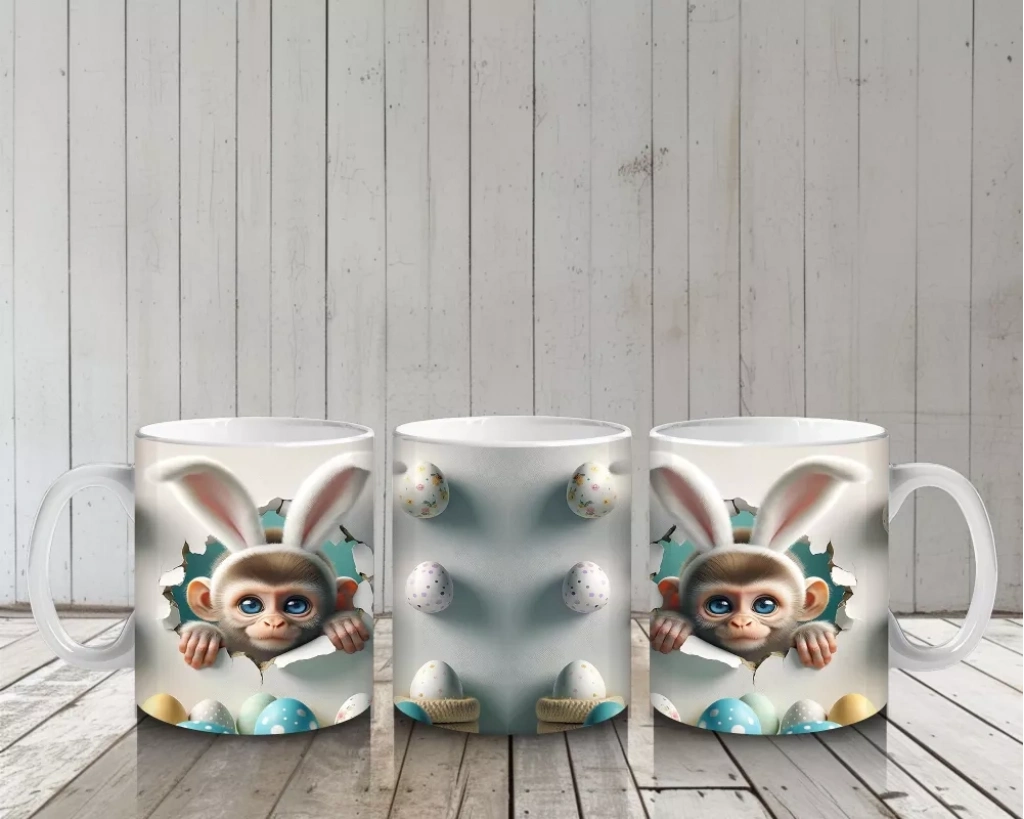 Paskalya Yumurtaları Arasında İkiz Maymun Karakterleri – Baskılı Kahve Kupası