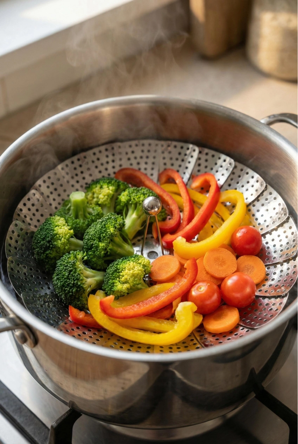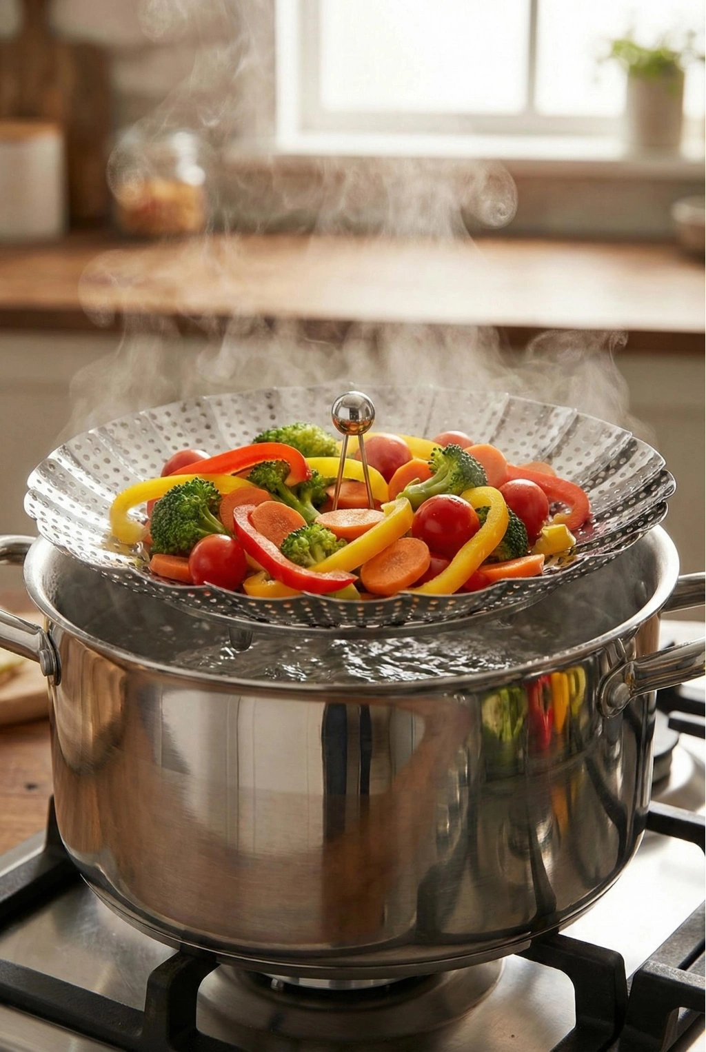 Sağlıklı beslenmeyi mutfağınızın merkezine taşıyan bu paslanmaz çelik haşlama aparatı, sebzelerinizi besin değerini kaybetmeden buharda pişirmeniz için tasarlanmış pratik bir çözümdür.