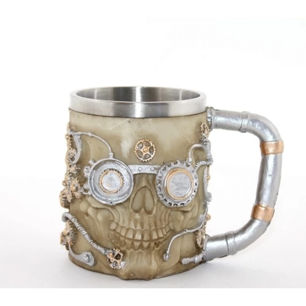 PASLANMAZ ÇELİK KUPA BARDAK MODEL 2Ürün ÖzellikleriPaslanmaz Çelik Kupa Bardak Model 2, kuru kafa ve steampunk detaylarıyla dikkat çeken bir içecek aksesuarıdır. Yüksek kaliteli paslanmaz çelik malzemeden üretilmiştir, sıcak ve soğuk içecekleri uzun süre muhafaza eder. Kuru kafa ve steampunk dişli süslemeleri, gotik ve endüstriyel bir hava yaratırken, kupayı eşsiz ve benzersiz bir parça haline getirir. Hem dekoratif bir masaüstü aksesuarı hem de işlevsel bir kupa olarak kullanılabilir. Koleksiyon severler ve steampunk teması sevenler için ideal bir seçimdir.Paket İçeriği1 adet Paslanmaz Çelik Kupa Bardak Model 2