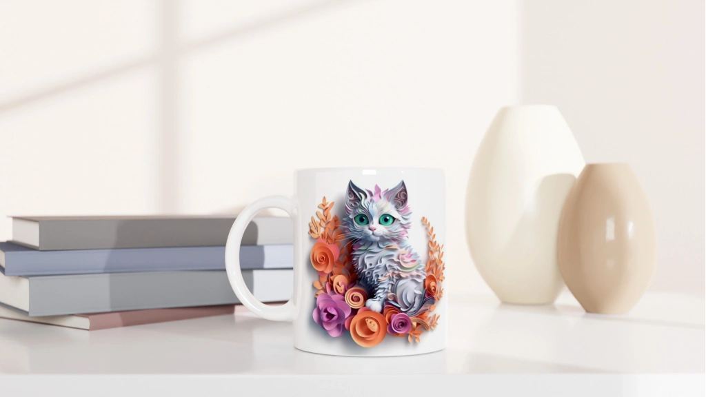 Yumuşacık renkler, sevimli bir bakış ve romantik çiçek detayları bu kupayı eşsiz kılıyor.