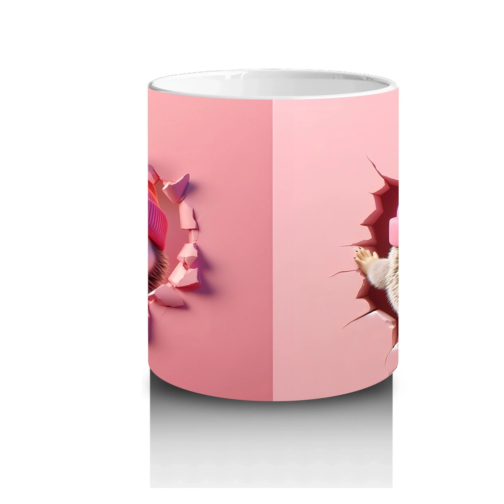 Pembe Bere Takmış Sevimli Bebek Kirpi (Ön ve Arka) – Baskılı Kahve Kupası