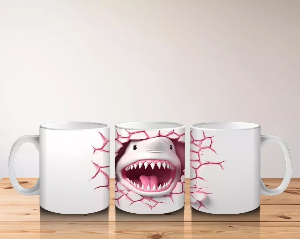 Duvarı yarıp gelen bu neşeli köpekbalığı ile sıradan kupalara veda edin! Mizahi dokunuşlar sevenlere özel, eğlenceli ve dikkat çekici bir tasarım.