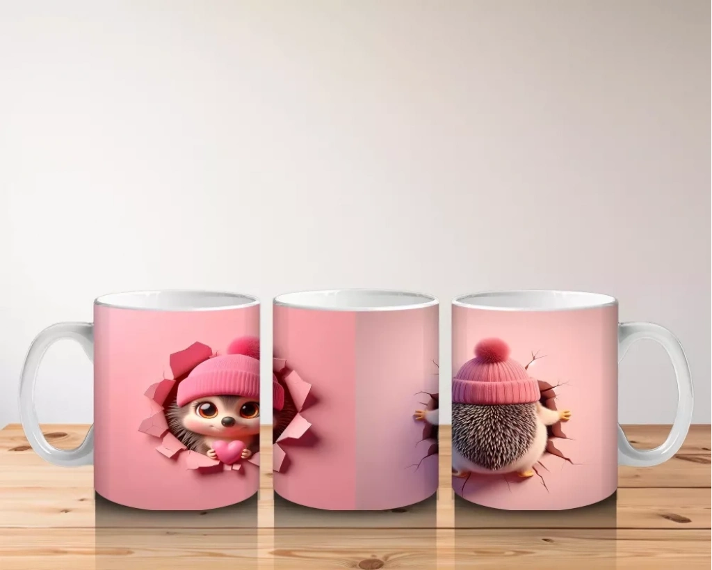 Pembe şapkasıyla bakışlarını size çeviren bu minik kirpi, beklenmedik bir tatlılık sunuyor. Farklı ve sempatik bir kupa arayanlar için neşeli bir seçim.