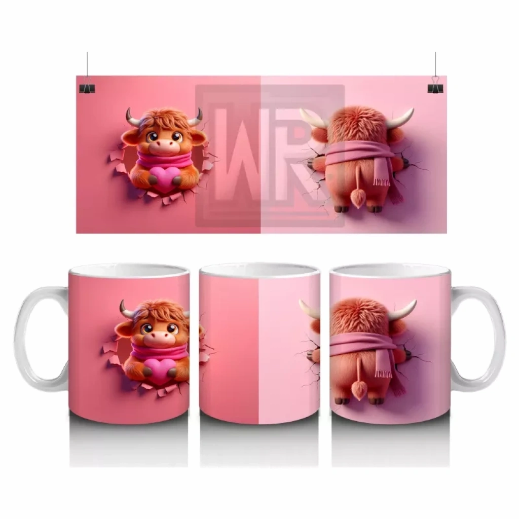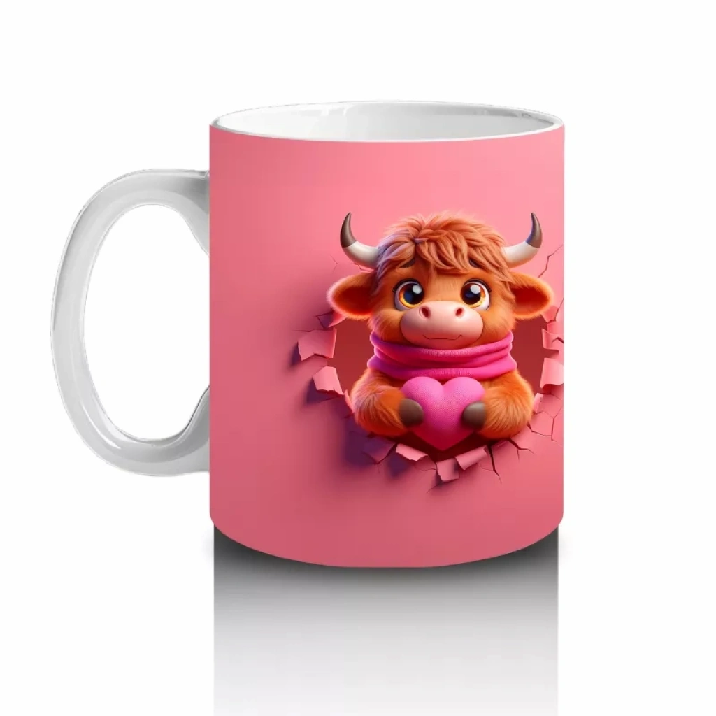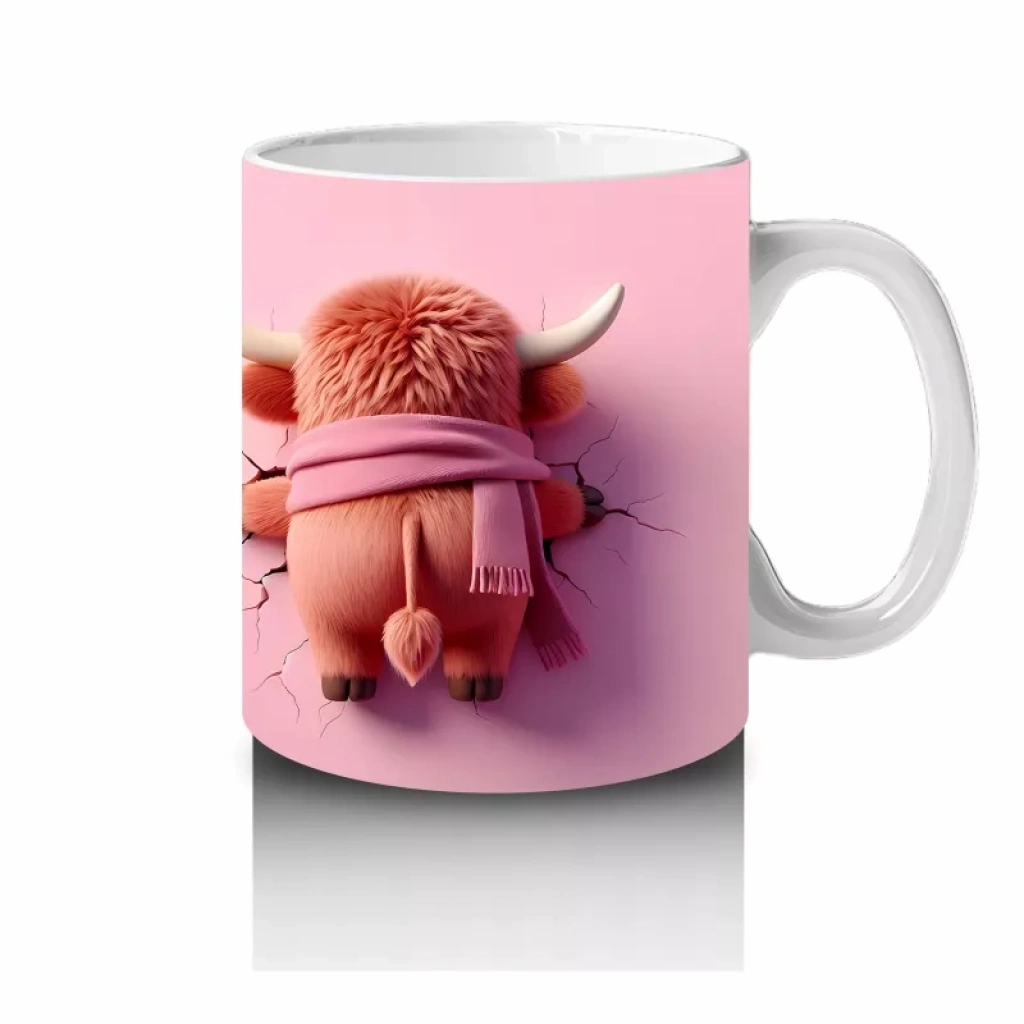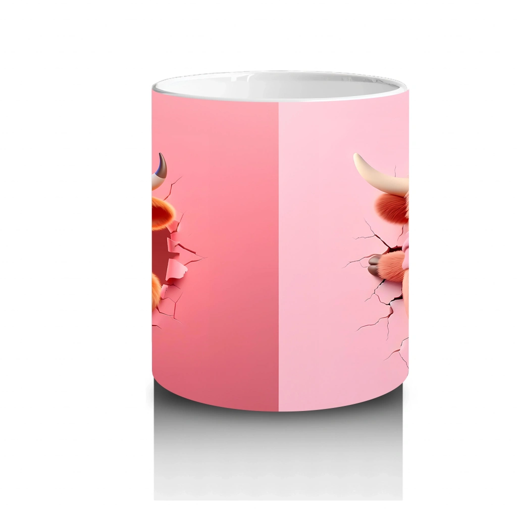 Pembe Fon Üzerinde Kurdeleli Maskot Buzağı – Baskılı Kahve Kupası