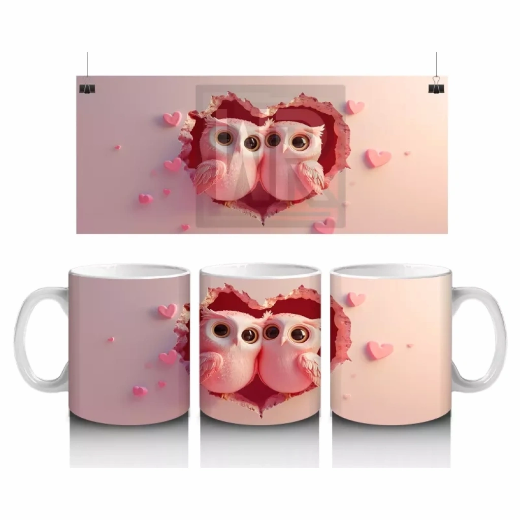 Pembe Gözlüklü Aşık Baykuşlar – Baskılı Kahve Kupası