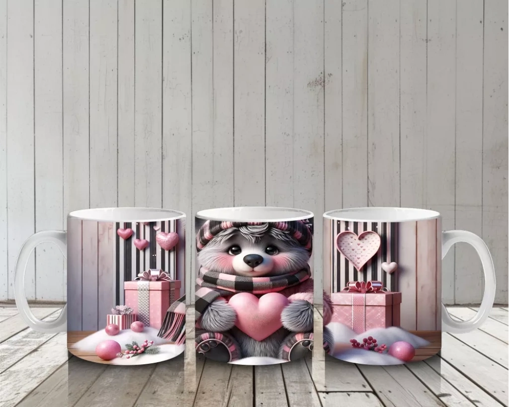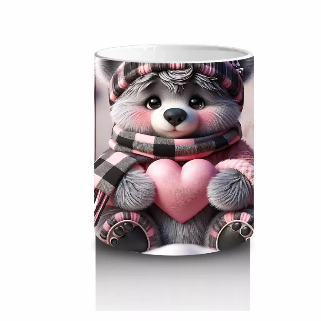 Pembe Kalplerle Süslenmiş Ayıcık – Baskılı Kahve Kupası