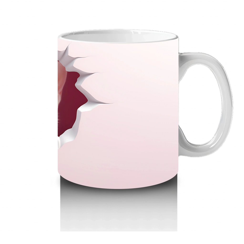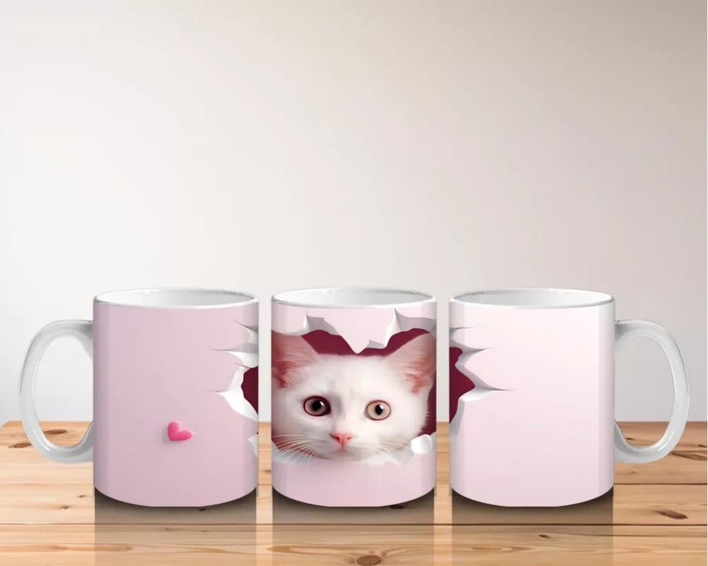 Pembe Kalplerle Süslenmiş Sevimli Kedi – Baskılı Kahve Kupası
