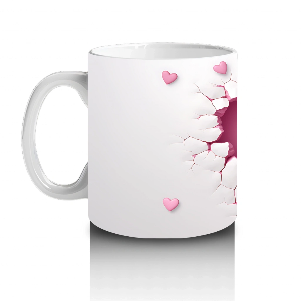 Pembe kalplerle çevrili yavru köpek figürü, sevgi ve neşeyle dolu sıcak bir atmosfer yaratıyor. Sevimli ve içten tasarımlardan hoşlananlar için özel bir kupa.