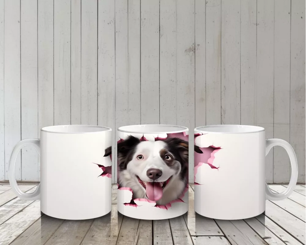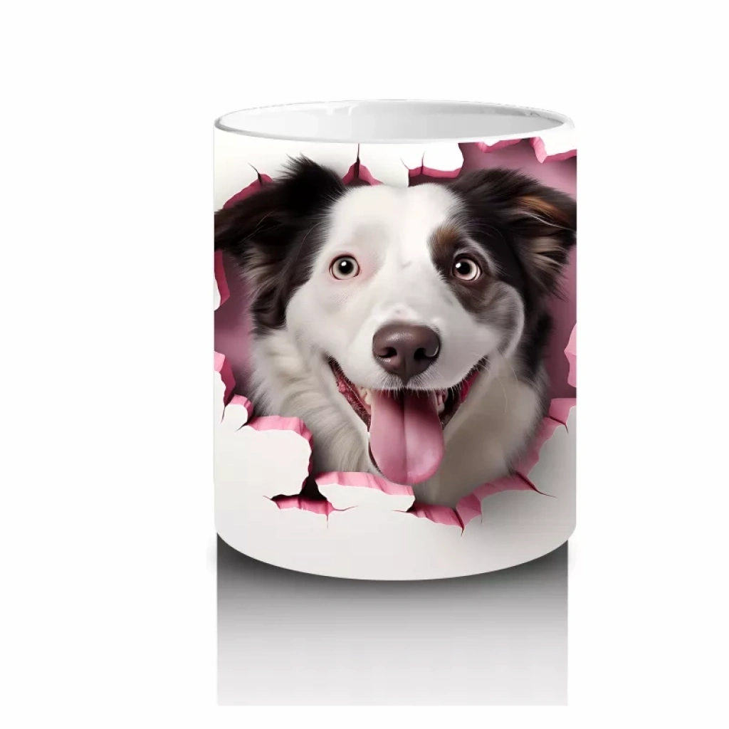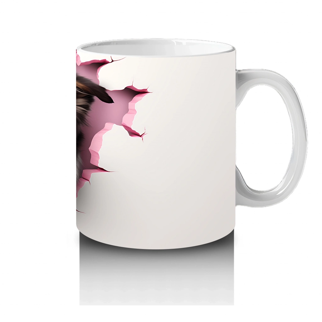 Pembe Kalpli Çatlakta Bakan Neşeli Köpek – Baskılı Kahve Kupası