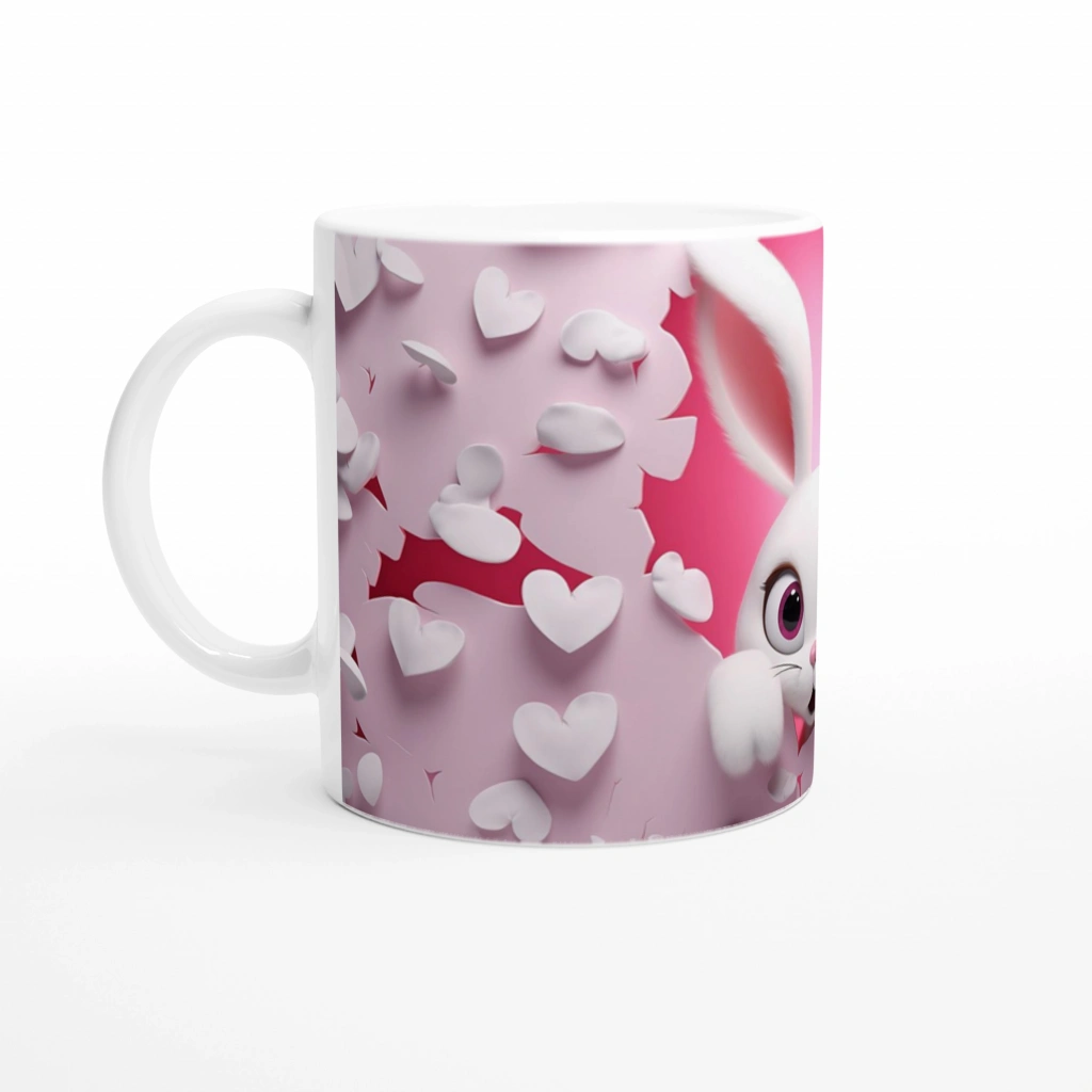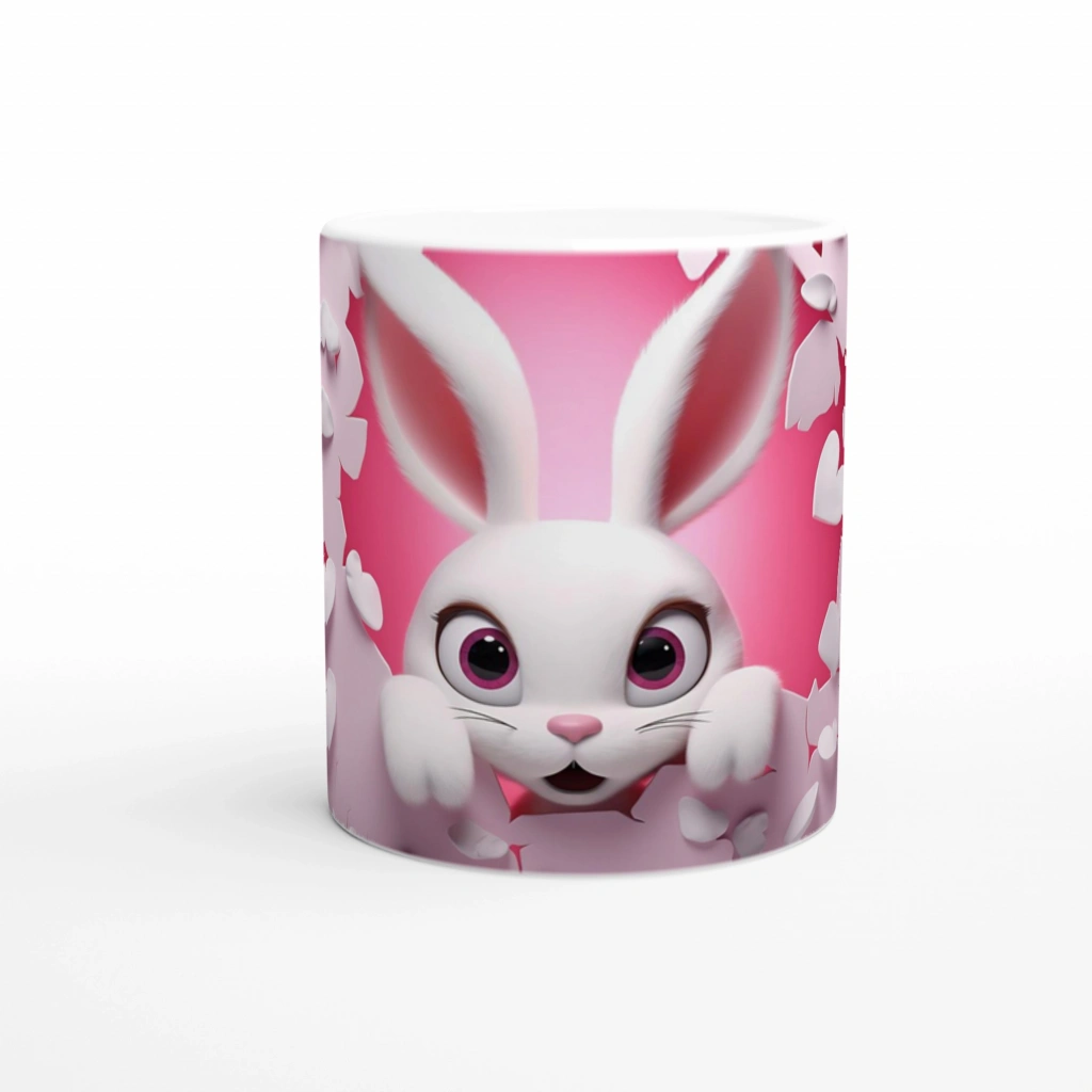 Pembe Kalpli Duvardan Bakan Tavşan Temalı Baskılı Kupa Bardak