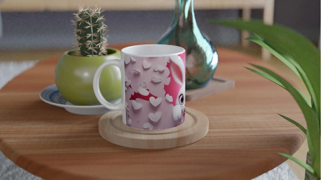 Pembe Kalpli Duvardan Bakan Tavşan Temalı Baskılı Kupa Bardak, uçuşan beyaz kalpler ve kırık duvar efektiyle enerjik ve sevgi dolu bir atmosfer sunuyor. Çocuklara özel hediyelikler arasında öne çıkıyor.