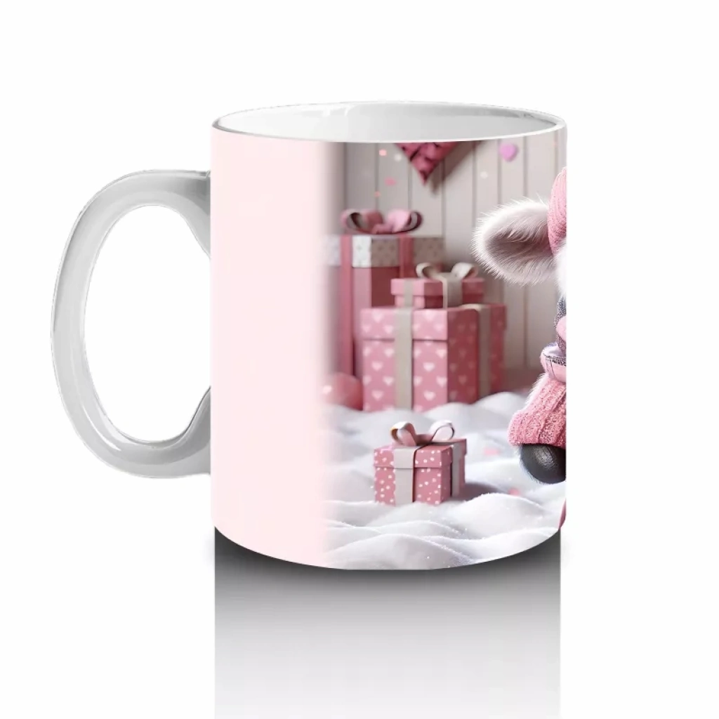 Pembe Kareli Şapkalı Sevimli Kız Maskot – Baskılı Kahve Kupası