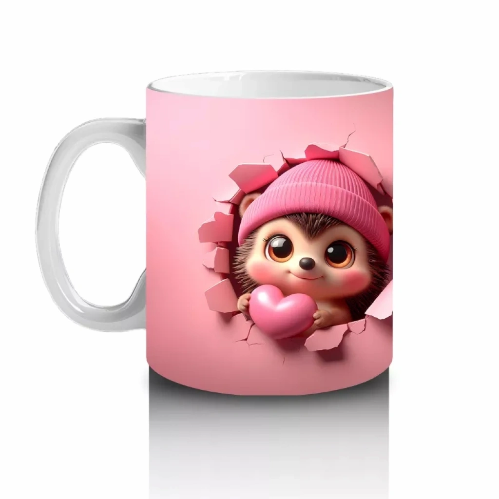 Pembe şapkasıyla bakışlarını size çeviren bu minik kirpi, beklenmedik bir tatlılık sunuyor. Farklı ve sempatik bir kupa arayanlar için neşeli bir seçim.
